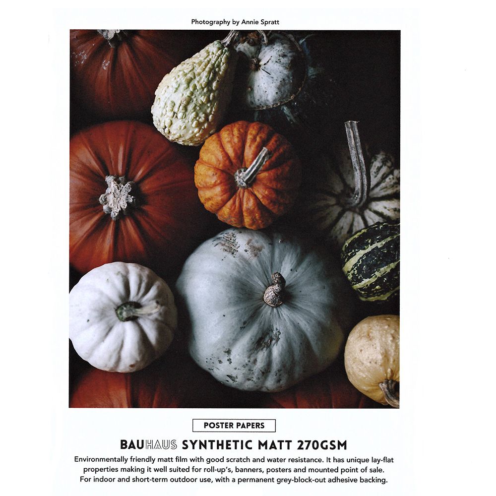 • Unique lay-flat properties making it well suited for Roll-Ups, banners,
