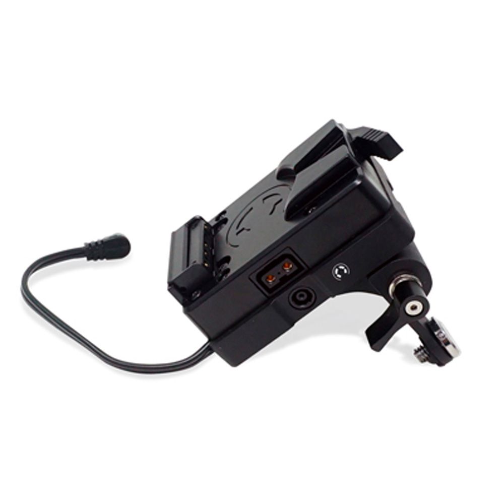 The CXVM-FX6 mounts directly to the back of the Sony PXW-FX6. The milled aluminium product inserts into the battery slot of the camera and also attaches into the top of the camera(with included screw hardware) to provide a secure platform for mounting v-mount batteries directly onto the FX6 camera. It has a 19.5v DC output with a visual low battery warning LED and a DC barrel input (OEM camera power supply) for hotswapping between external and on-board power. In addition, it’s equipped with a powertap and USB to power additional accessories. A USB firmware update port on the rear ensures future compatibility with camera firmware updates.