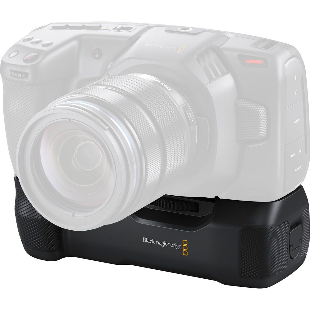 The grip's two batteries enable you to run your BMPCC 6K/4K camera for up to two hours or to provide power to an external flash drive. When you're not shooting, the batteries can be charged in the grip using your camera's DC connection. The grip's design creates a larger, non-slip handgrip and it incorporates a storage slot for your camera's battery door cover.