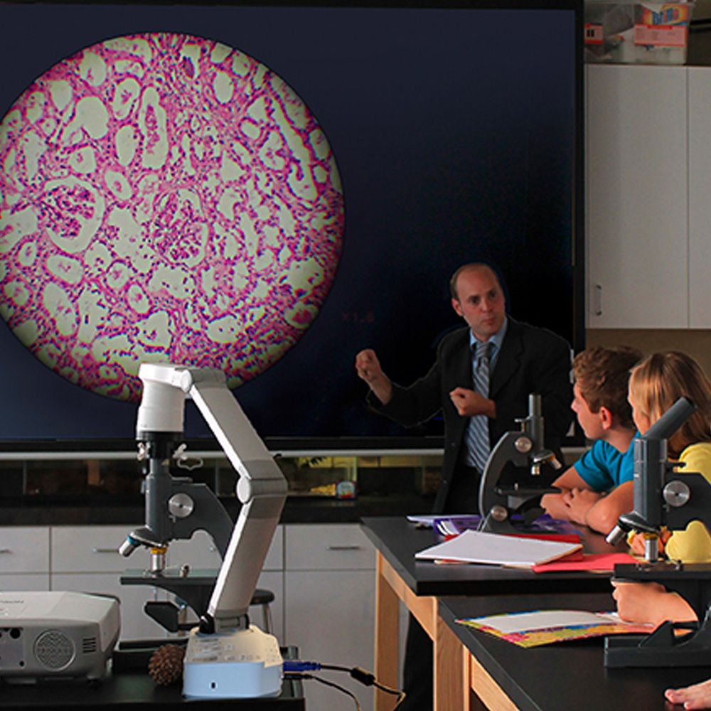 - Share magnified images – microscope adapter included; supports many standard microscopes