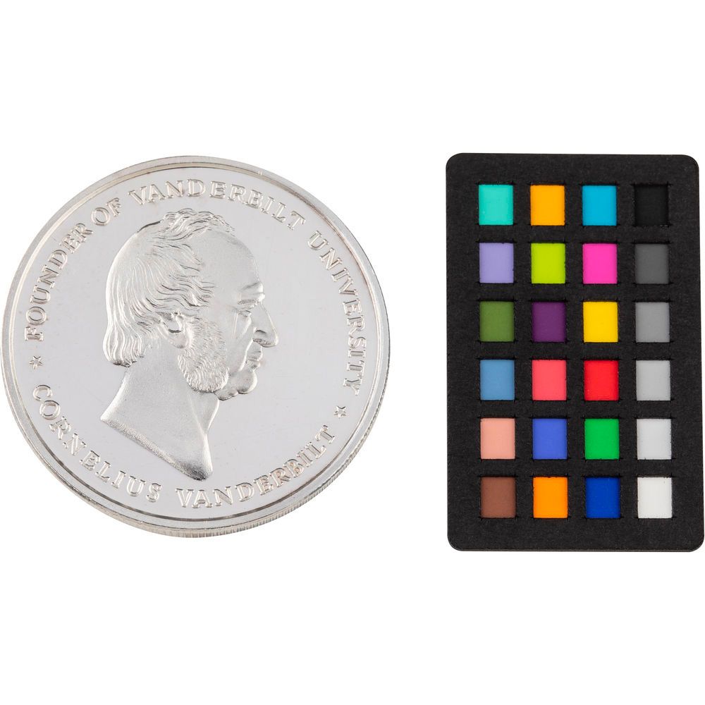 At just 1 x 1.75 in (24 x 40 cm), the ColorChecker Classic Nano is ideal for the smallest scenes and closest shots. This target was developed for work with botanical photography and is perfect for those situations where a tiny target is required for jewelry, flowers, or other small materials, as well as stop action photo and small scale films. It can be used in conjunction with the ColorChecker Camera calibration software to create the custom profile to save time in editing your photos.