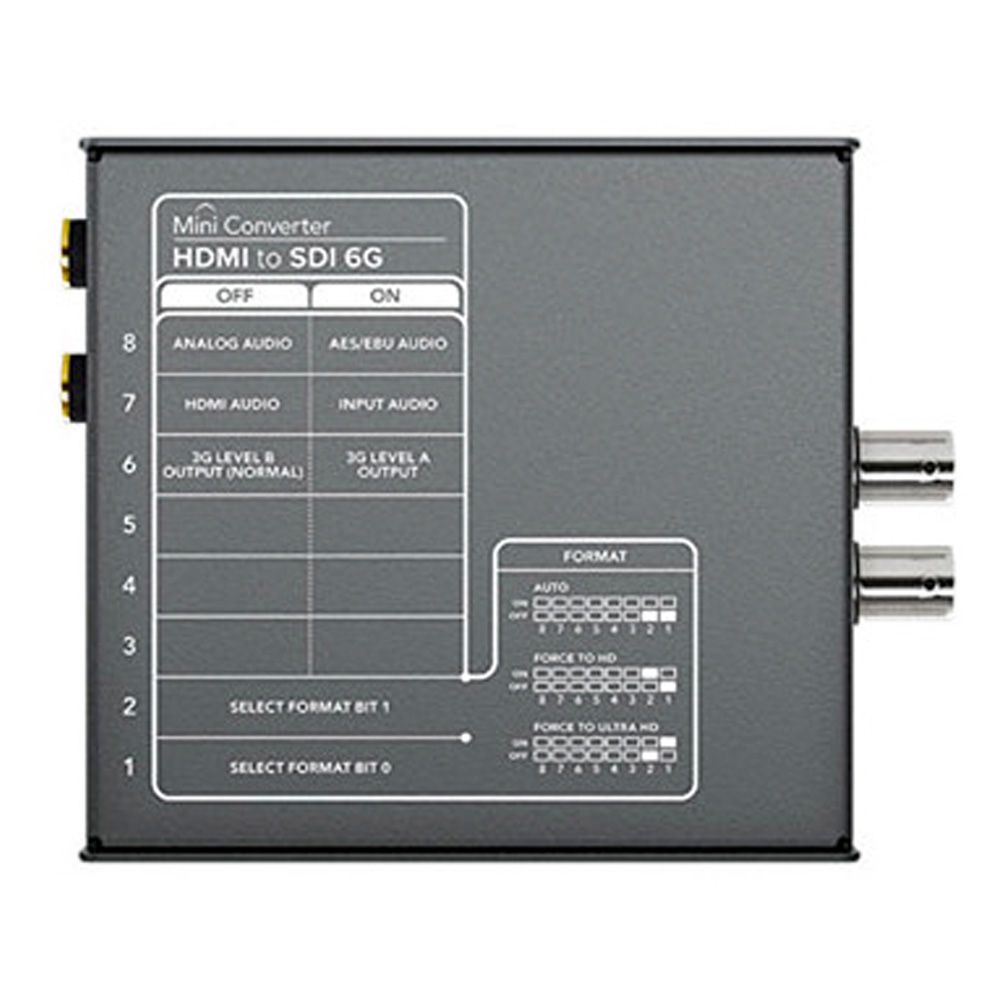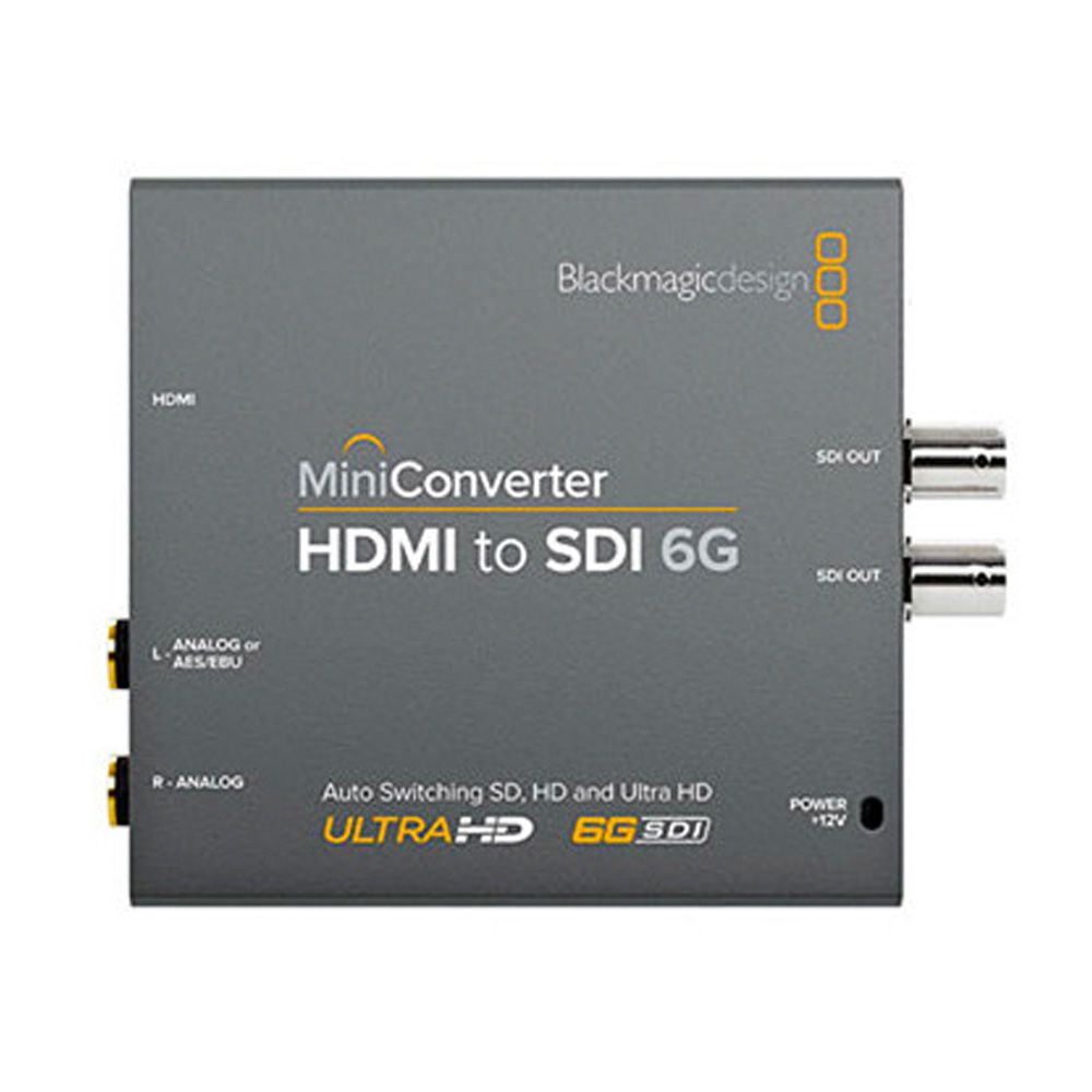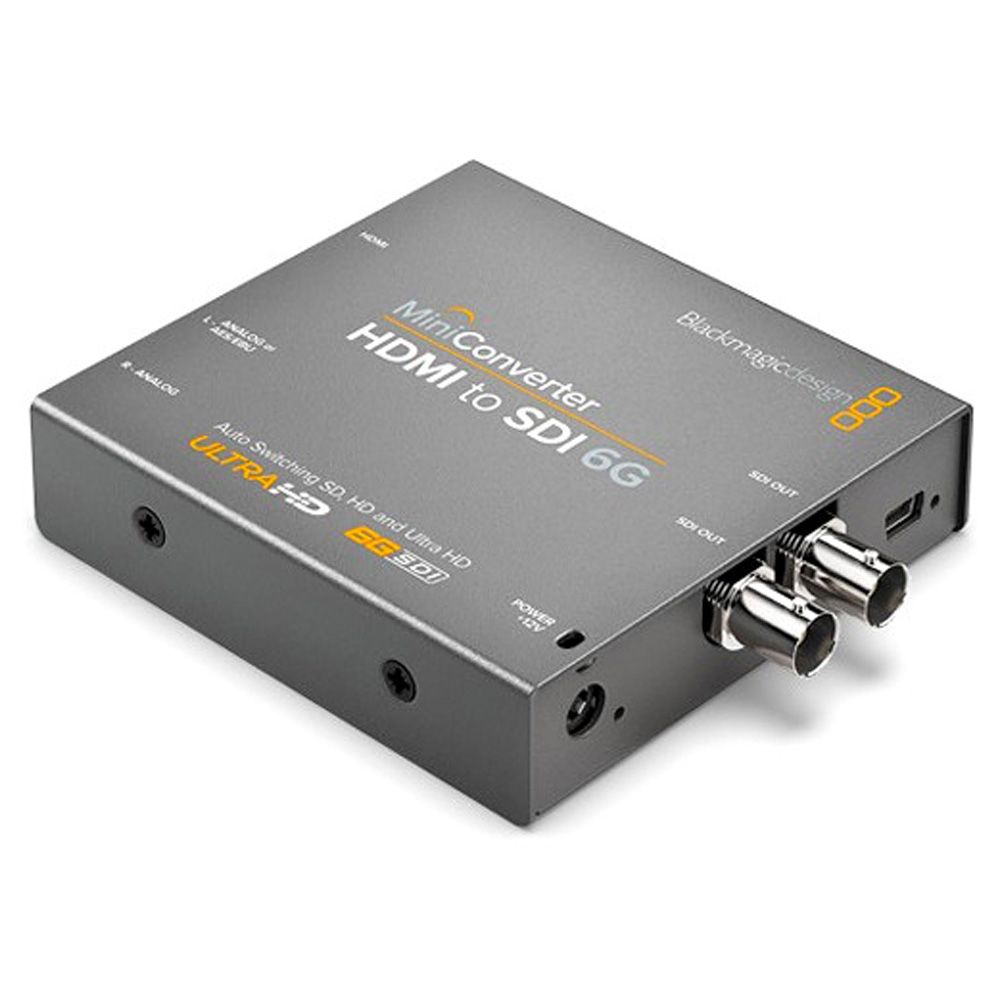 Blackmagic Design HDMI to SDI 6G Mini Converter converts HDMI to SD, HD, 3G, or 6G-SDI in resolutions up to DCI 4K (4096 x 2160) at 24p and UHD 4K (3840 x 2160) up to 30p. This is useful for connecting consumer devices that output HDMI signals with professional SDI video equipment. With a compact form factor and easy-to-use controls, the Mini Converter is ideal for a variety of broadcast, post-production, and professional AV applications.