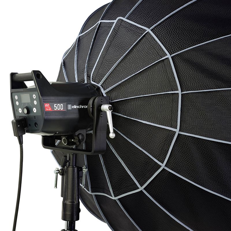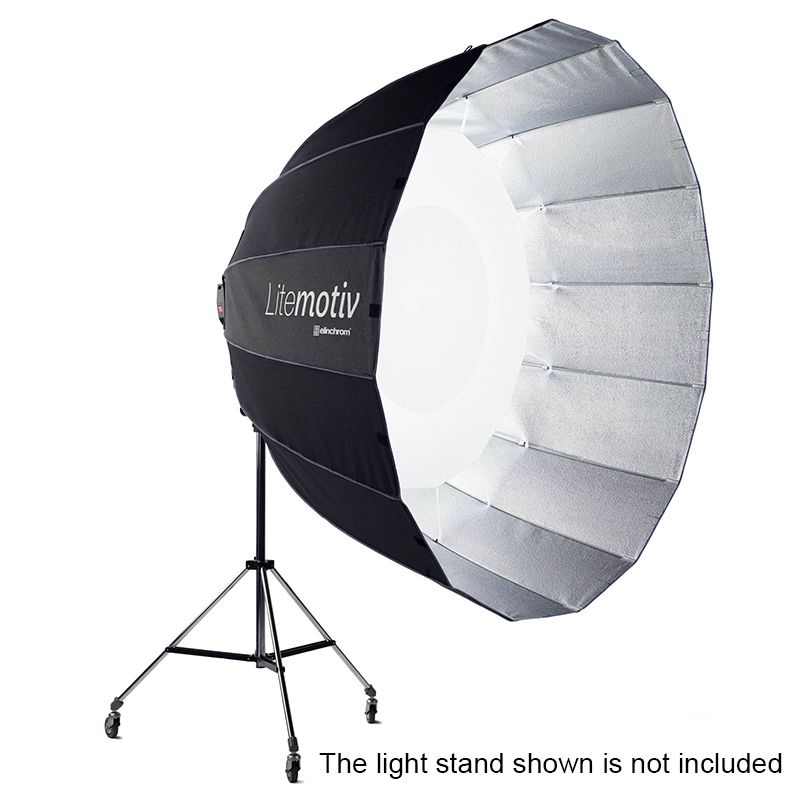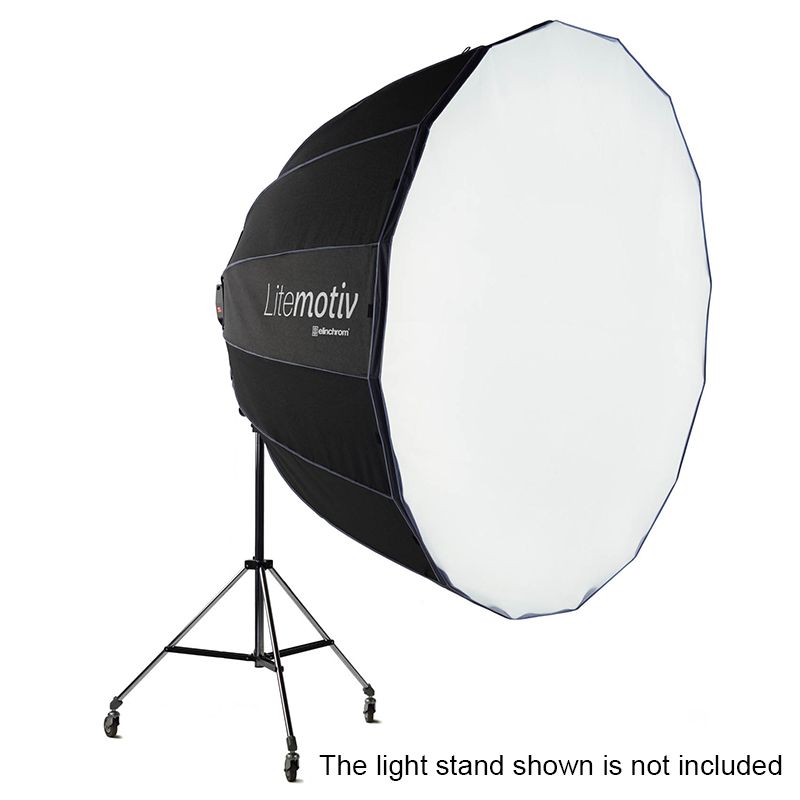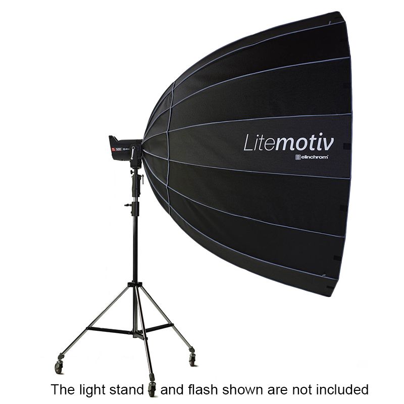 The Litemotiv 190cm Parabolic Softbox from Elinchrom is a logical extension of their softbox range. The 16-sided softbox is ideal for portraiture since its form factor renders pleasing circular catchlights in the subject's eyes, while the Litemotiv's large surface area wraps the soft light around the subject.