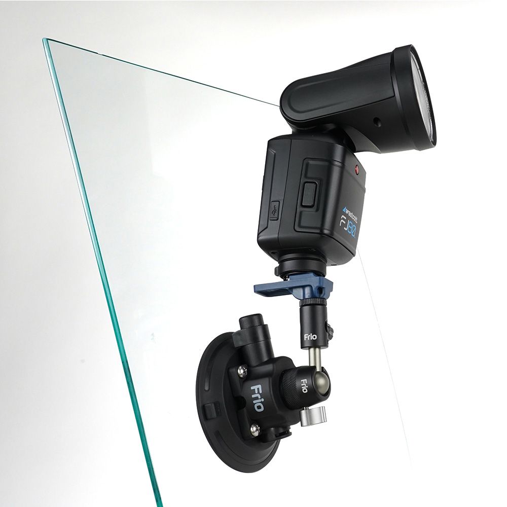 Combining an innovative cold shoe adapter design with a vacuum mount with a mini ball head enables your hot shoe flash or light panel to adhere to virtually any surface via the 4inch wide rubber pad. A manual pump removes air to ensure a secure mount, which is further aided by a warning indicator alerting to any leaks in the seal.