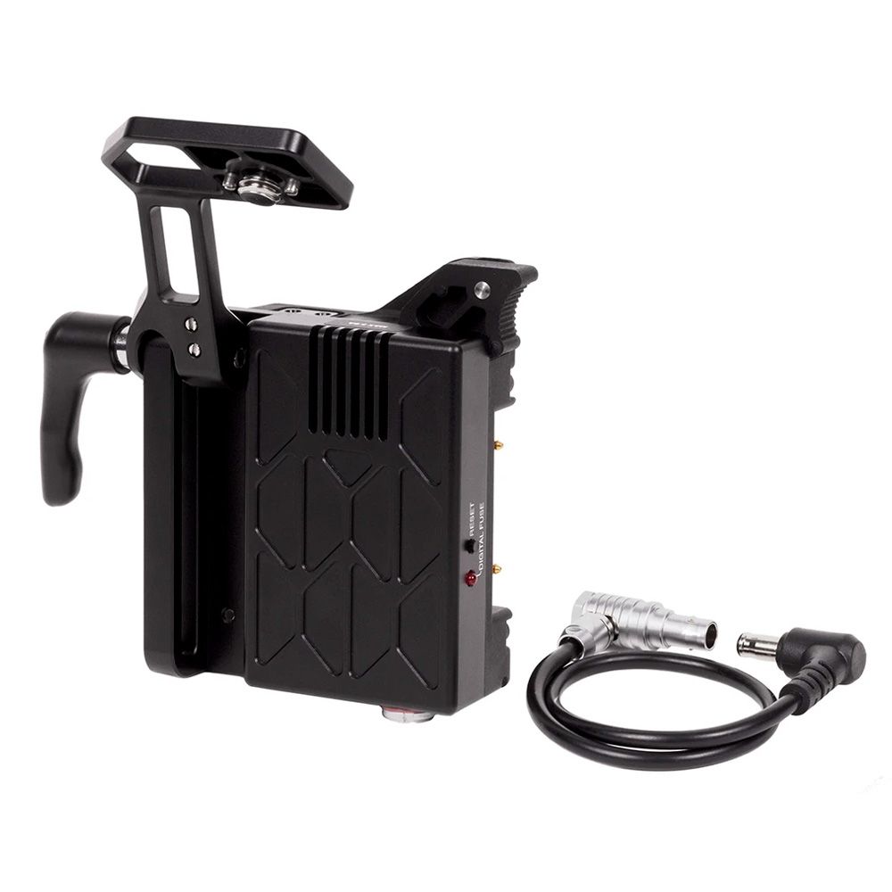 It also features two D-Tap (5.8 Amps) ports for accessory power as well as a digital fuse which cuts off accessory outputs, should the user exceed the set current for accessories, while leaving the camera powered. Once the current load has been reduced by either removing accessories or reconfiguring, the reset button can be pressed to enable accessory power again.