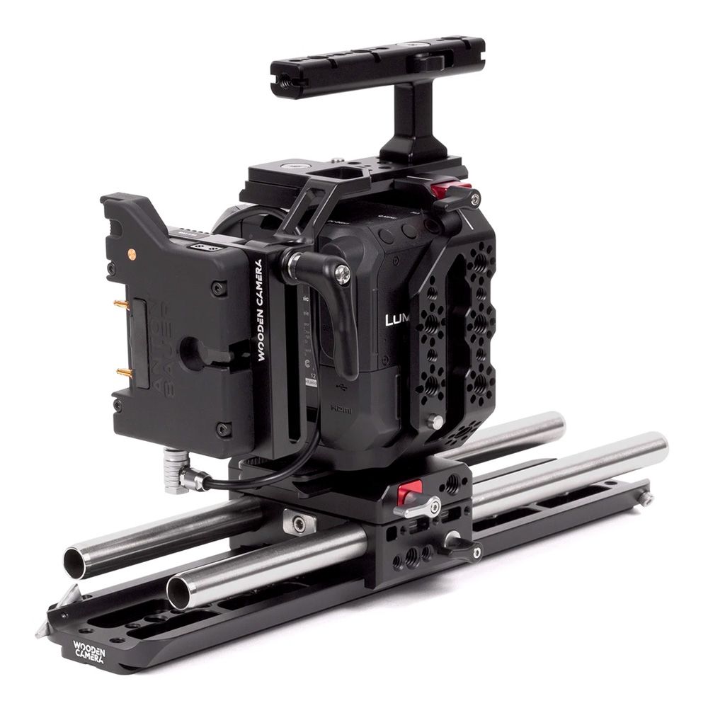 Micro Gold Mount Battery Slide (Panasonic BGH1) utilizes an Anton/Bauer micro battery plate which provides a regulated 12v to a 3-Pin LEMO compatible connector for camera power. The plate attaches directly to any 3/8"-16 mounting point without the need for rods. Position can be adjusted along the battery slide.