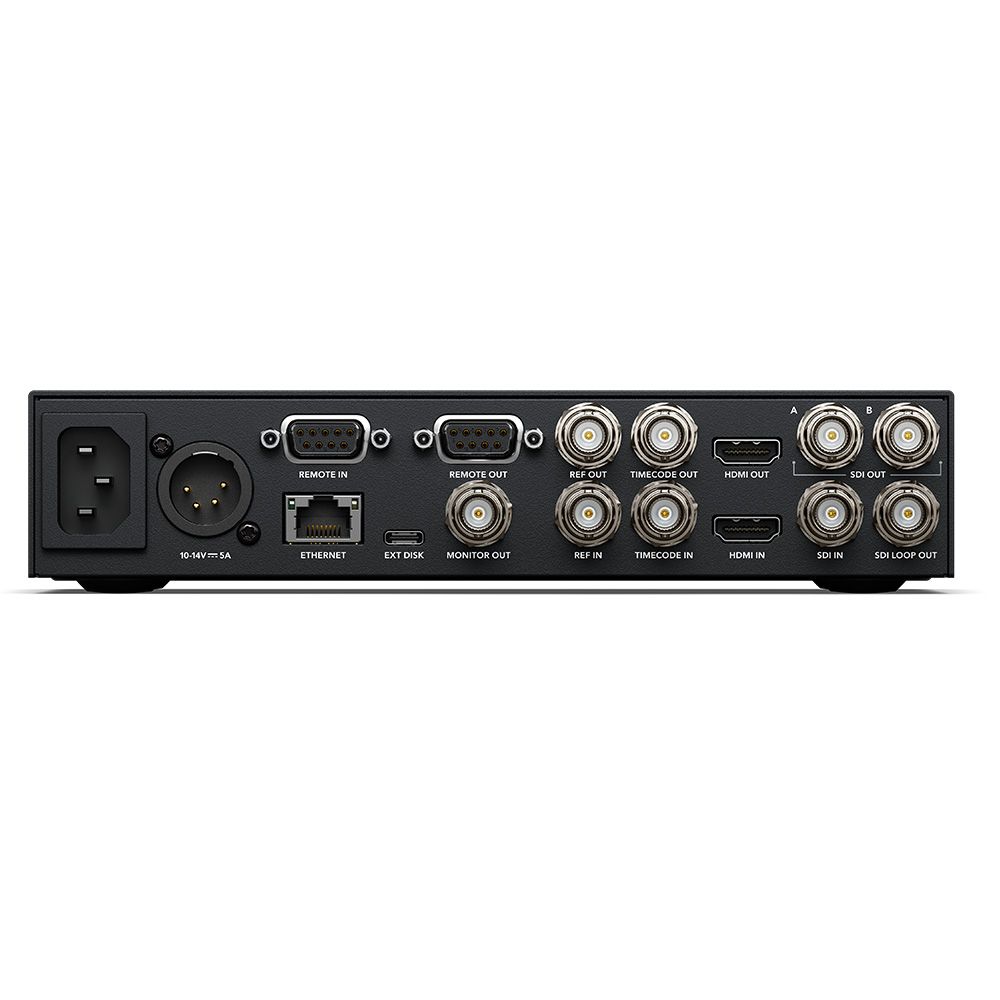 Two SD card slots allow you to capture with virtually unlimited record time, and the unit also supports recording to USB disks via the USB Type-C output port. The HyperDeck Studio HD Plus features a front-panel button control and a jog/shuttle wheel for an analogue scrubbing feel. RS-422 control is supported for external control, and you can also control the unit using either the USB port or over Ethernet at 1G speeds for faster deck control and file transfers via the RJ45 connector. An integrated LCD on the front panel allows you to monitor the video.