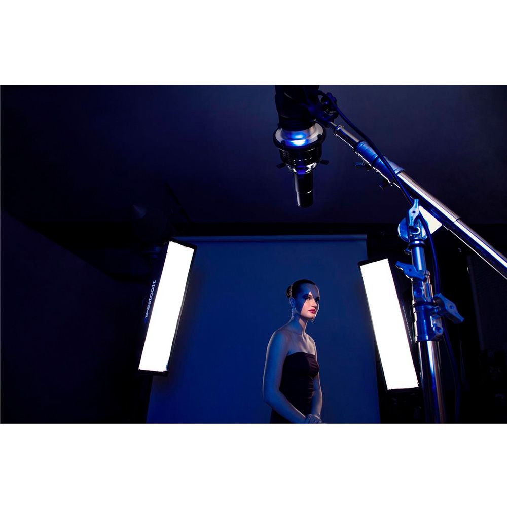 The Westcott Optical Spot can be used with a constant light or studio strobe, giving it the versatility to be used for stills or videos. The spot easily attaches to the front of a compatible light source using the included light mount. It’s rated for use with up to 100W COB LEDs and 600Ws strobes with non-bulb based or no modeling lamp. It has a max heat rating of 248°F (120°C)