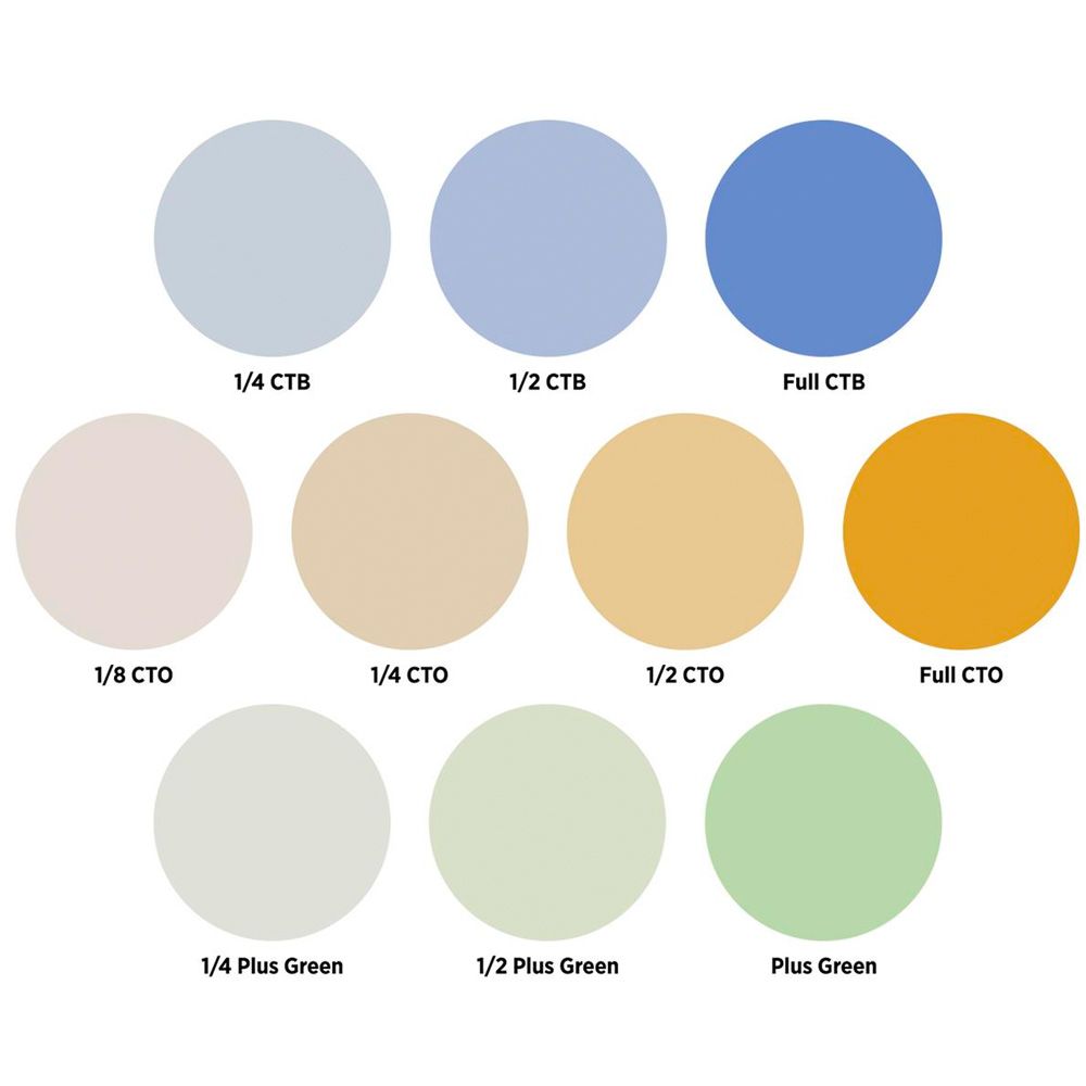 • Full, 1/2, and 1/4 Color Temperature Blue (CTB) gels to cool the color temperature of a warm-toned light source to appear closer to white light
