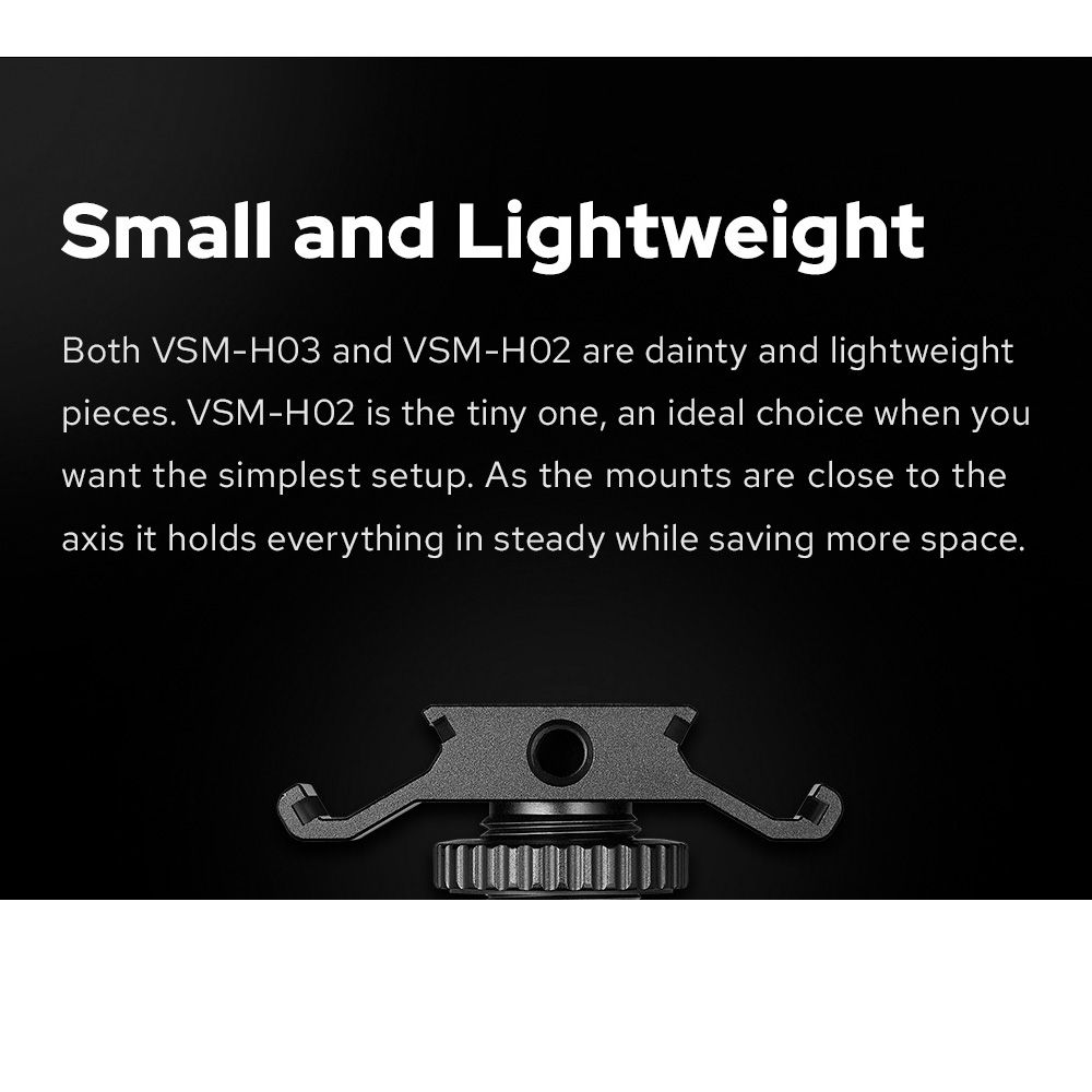 Both the VSM-H03 and VSM-H02 are light and thoughtful accessories. The VSM-H02 is the perfect choice if you want the simplest setup. Due to the fact that the mounts are close to the axis, everything stays firmly, while saving a lot of space.