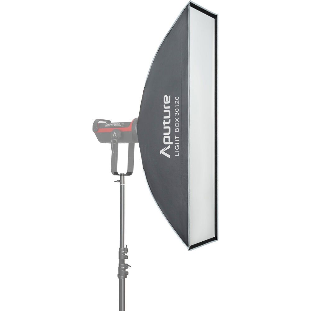 The Light Box 30120 from Aputure is a softbox measuring 30x120cm that mounts onto any light with a Bowens mount. It features a narrow, rectangular design so it can be used as a soft edge light or for reflections, and it can be tucked into corners and locations where larger softboxes are not able to fit.