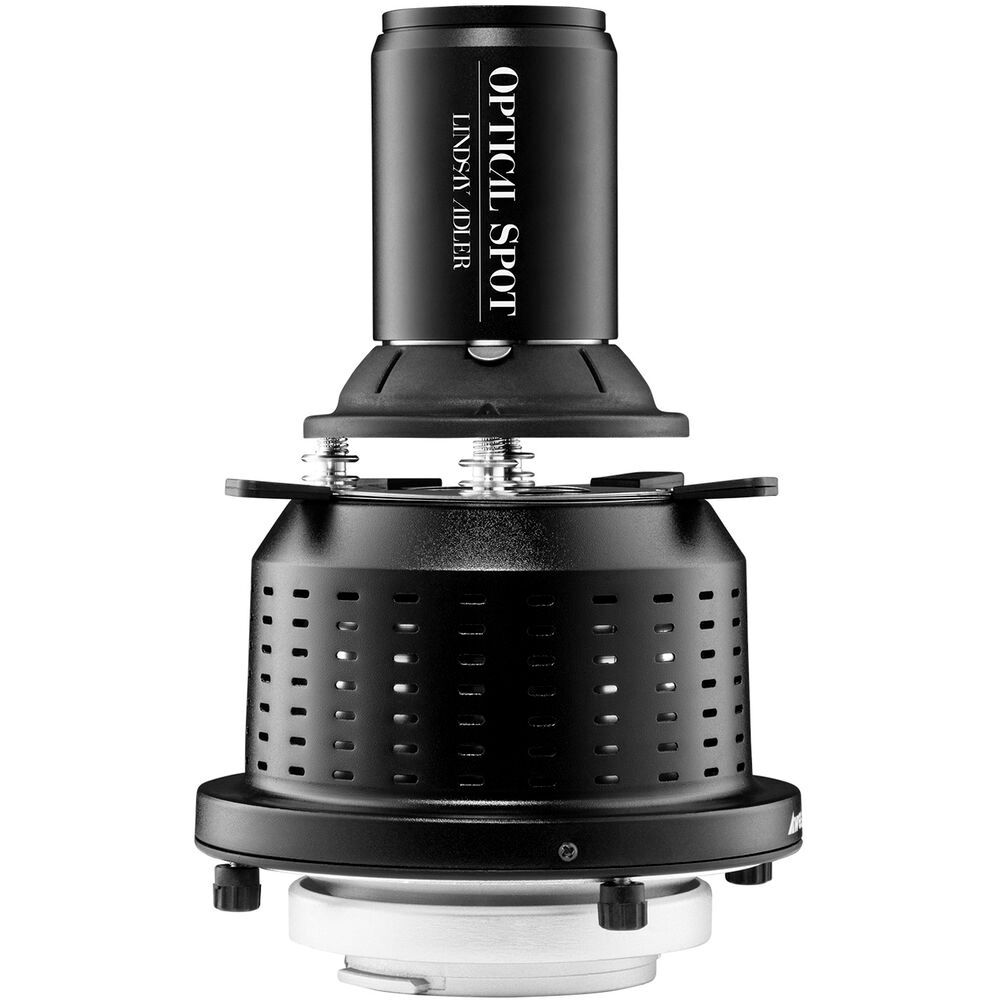The package includes a focusable 150mm f/3.5, Canon EF Mount lens in a snugly fitting housing that virtually eliminates spill light, directing it all forward through the eight included gobos or five colour gels allowing you to project patterns on any subject or surface or creatively colour them. Even greater beam control is provided by the four cropping blades that are built into the housing. Purchase of the Optical Spot also gives you access to an exclusive 40-minute video with Lindsay's Top 5 Uses to spark your creativity. The Optical Spot is compatible with strobes up to 600Ws (with the modelling light off) or COB LEDs up to 100W.