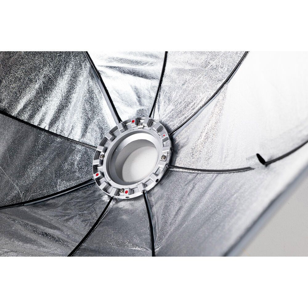 The OctaDome 120 features a silver interior to maximize light output and includes a foldable 45° grid to add directional output and reduce light spill. The set includes a Bowens-type speed ring, but is also compatible with other types of standard speed rings.