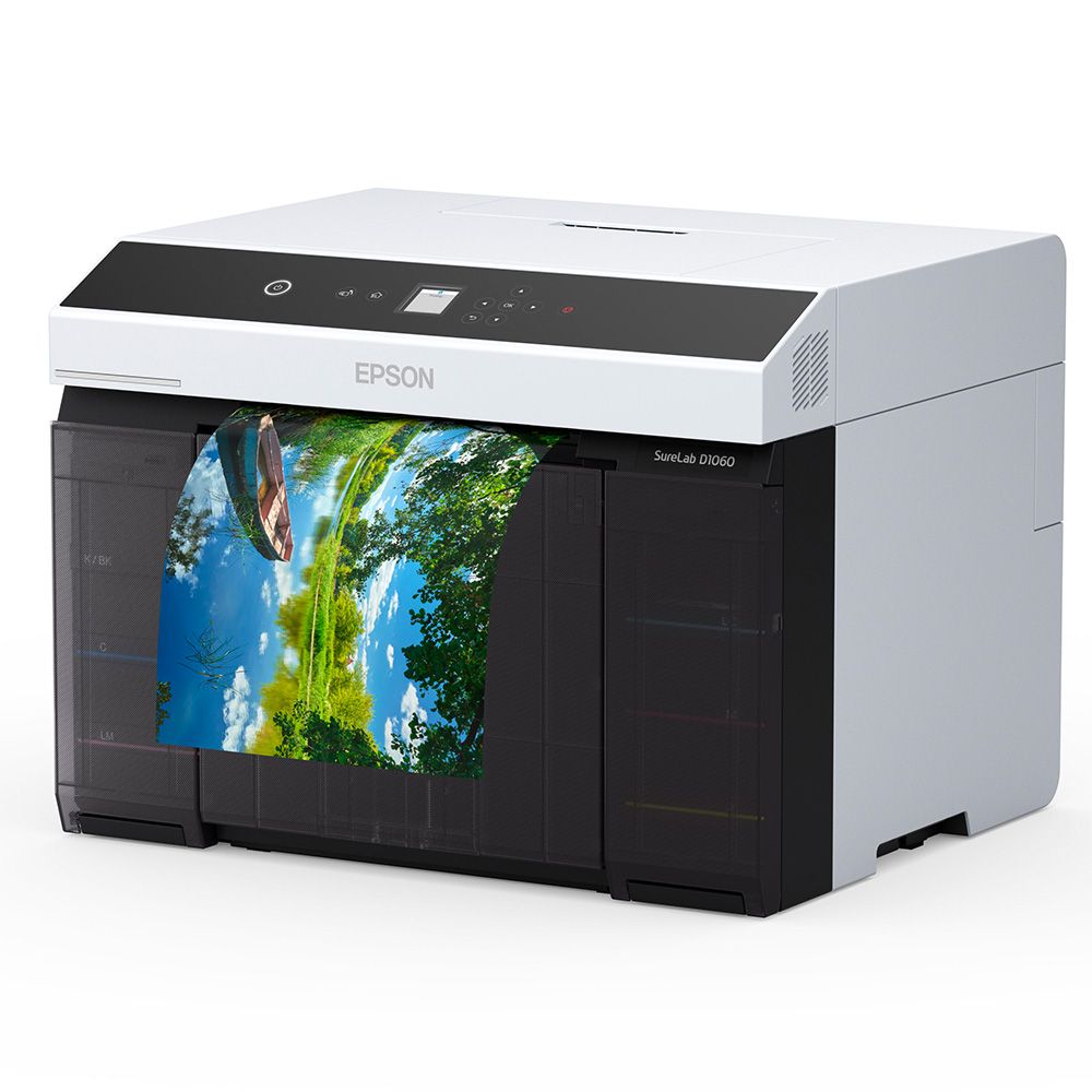 The SL-D1060 Dry-film Minilab is designed for low-medium volume production. It can be operated as a standalone machine or in multiples for heightened production. It incorporates a high precision Epson Micro Piezo™ Thin Film Print™ (TFP) head that enables accurate and consistent output in resolutions up to 1440 x 720 dpi. It features an upgraded 6-colour ink set that is applied using Variable Sized Droplet Technology (VSDT), for outstanding image quality with an enhanced gamut and dMax. Staying true to the SureLab series, the D1060 is compact, lightweight, and requires minimal operational space. It can produce up to 460 4x6" borderless prints per hour, using cost-effective sheet and roll-based media that comes in sizes ranging between 3.5" to A4, with a variety of surface finishes. The printer ships with a powerful Windows® and Macintosh® OS driver to enable operation, with standard photo and graphic software. It can also be used with optional Epson Order Controller to provide a full production system complete with costing, image editing, job scheduling, and load balancing.