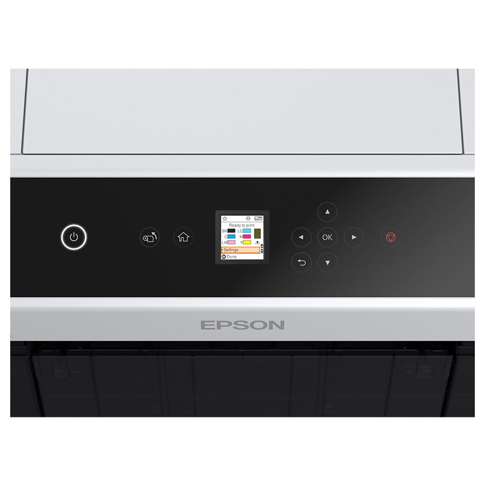 - Easy to Operate – simple to use with desktop control and direct control complete with an LCD screen. Features all-front-loaded consumables with no special handling processes, an integrated auto-cutter, front-mounted paper cut waste bin and pop-up output tray. Print direct from common photo applications or use optional Epson Order Controller for easy production with job costing, image editing, job scheduling and load balancing.2