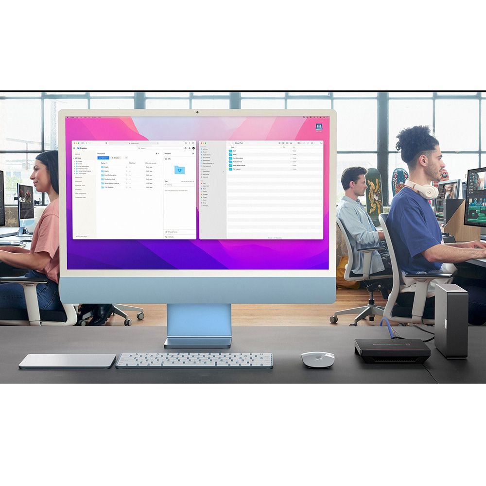 The Blackmagic Design Cloud Pod allows you to turn any USB-C disk into network storage, suitable for sharing a media disk recorded on a camera with multiple users on your network. It features a high speed 10G Ethernet connection for extremely fast file access. It’s fast, even with lots of simultaneous users all accessing files at the same time. With Dropbox live sync, files can be distributed between multiple units globally, for very fast local file access, even on lower cost internet connections. The Blackmagic Cloud Pod features and HDMI monitor output, making it the go-to solution for sharing files on a network.