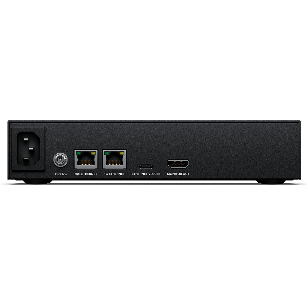 Blackmagic Cloud Store Mini features a compact rack mount design that's very portable and whisper quiet. Internally it has an array of 4 flash memory cards working in parallel for higher speed. The 10G Ethernet port and the 1G Ethernet port operate as a 2 port network switch. There is also an HDMI monitoring output so customers can watch a live graphic view of the storage operating on a TV or monitor.