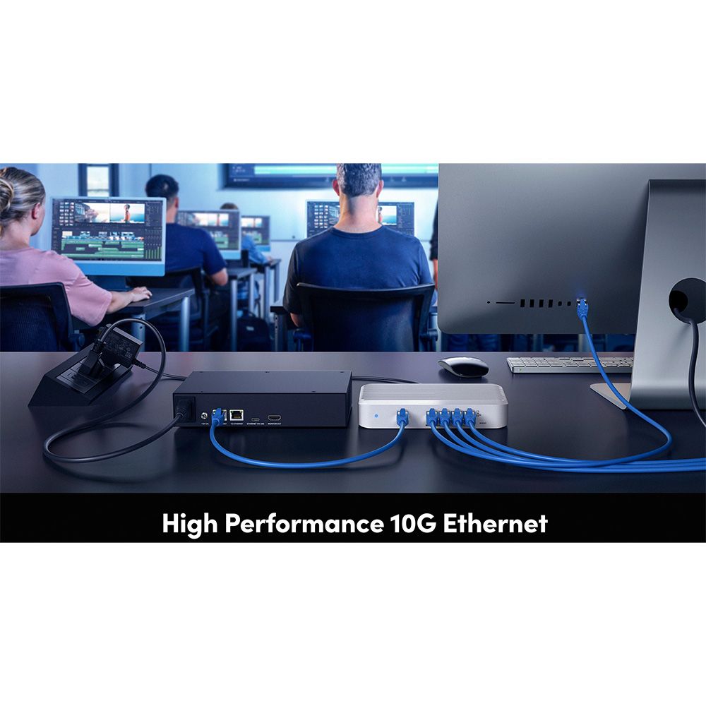 The Blackmagic Cloud Store Mini has a high speed 10G Ethernet port, which is only found on expensive workstation computers. The Blackmagic Cloud Store Mini is so fast, that it will run the 10G Ethernet port to its maximum capacity. Even when connected to an Ethernet switch with dozens of users accessing files at the same time.