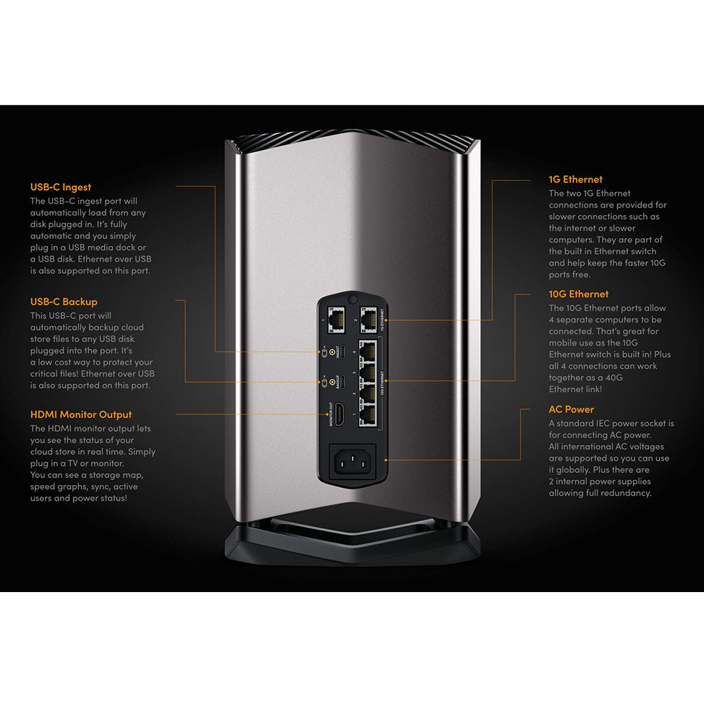 The Blackmagic Design Cloud Store 20TB is a very fast high capacity 20TB network disk that's designed to handle large media files used on large scale feature films. The design uses advanced flash memory so it easily handles many simultaneous users. The Blackmagic Cloud Store is extremely easy to set up. With Dropbox live sync, files can be distributed between multiple units globally for very fast local file access, even on reduced bandwidth internet connections. There are no subscription fees and it also features an HDMI monitor output with real-time storage status.