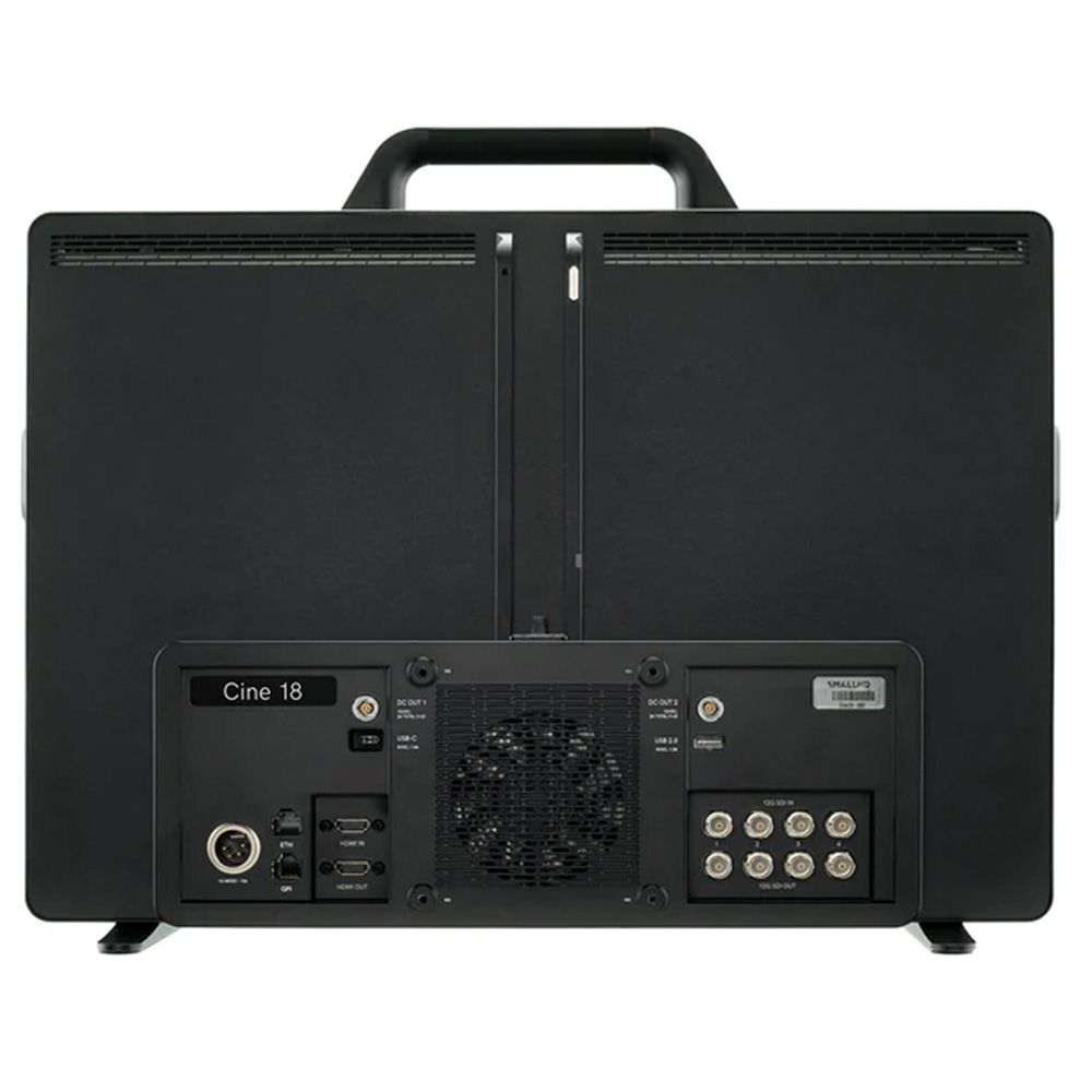 The monitor can be mounted using the VESA pattern on the back or by 1/4"-20 threads around the top and sides of the monitor. You can power the monitor using a 4-pin XLR input or via a separately available dual V-mount or Gold mount battery plate, and they are hot-swappable. Data inputs and output can be performed using the SD card slot to load 3D LUTs, and the monitor also features an RJ45 Ethernet port and an RJ45 GPI port for additional data and configuration. There is a 3.5mm headphone output to monitor the embedded audio.