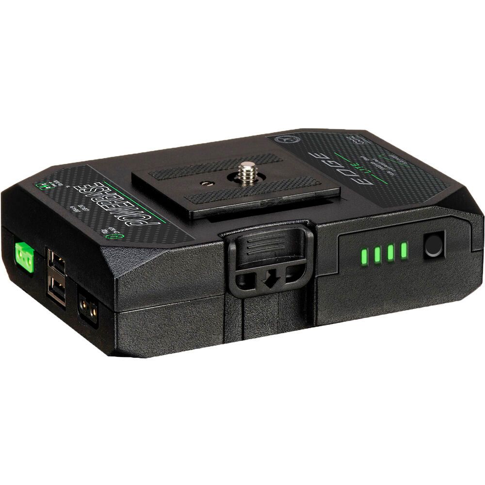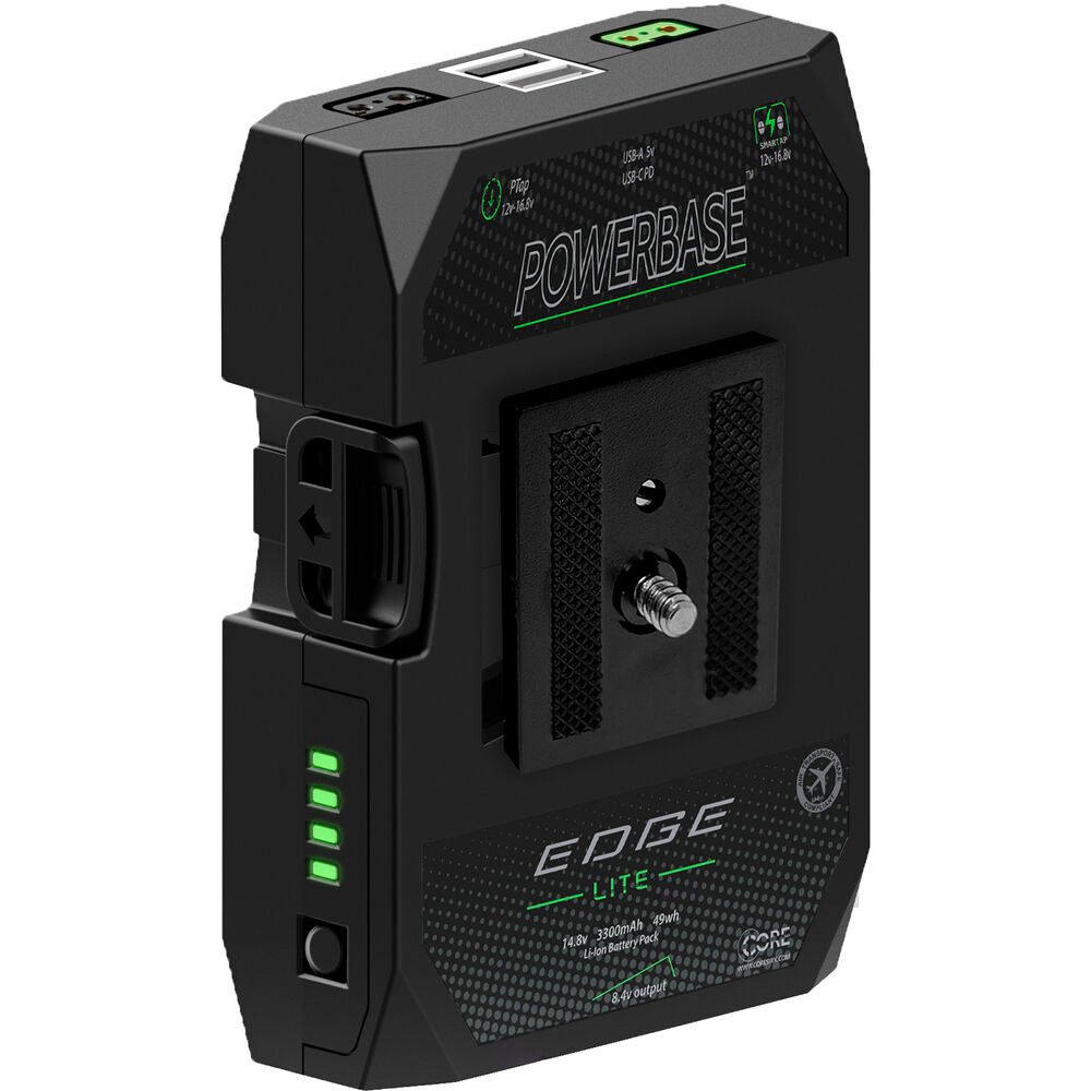 Power your camera and its accessories for more than eight hours with the Powerbase EDGE LITE 47Wh Battery Pack. This 14.8V battery has a maximum continuous draw of 8A. Featuring a quick-release plate and multiple 1/4"-20 threads, the battery can easily attach and disengage from your camera for a modular fit. The EDGE LITE's top plate is also compatible with the legacy EDGE model quick release plate to integrate into your preexisting Powerbase configuration.