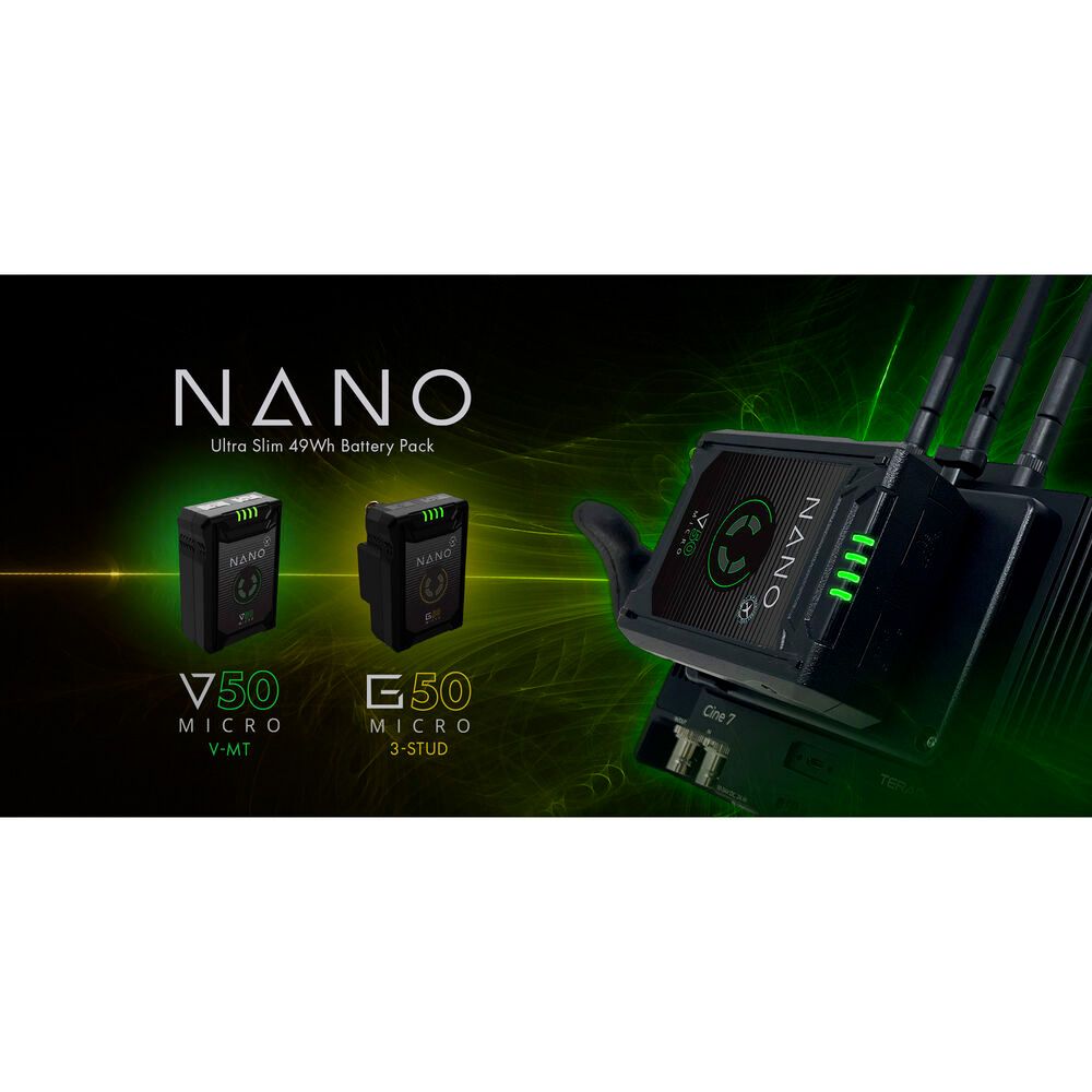 - The NANO Micro features a 14.8V, 49Wh capacity suitable for lighter camera powering applications like RED KOMODO and Canon Cinema builds.