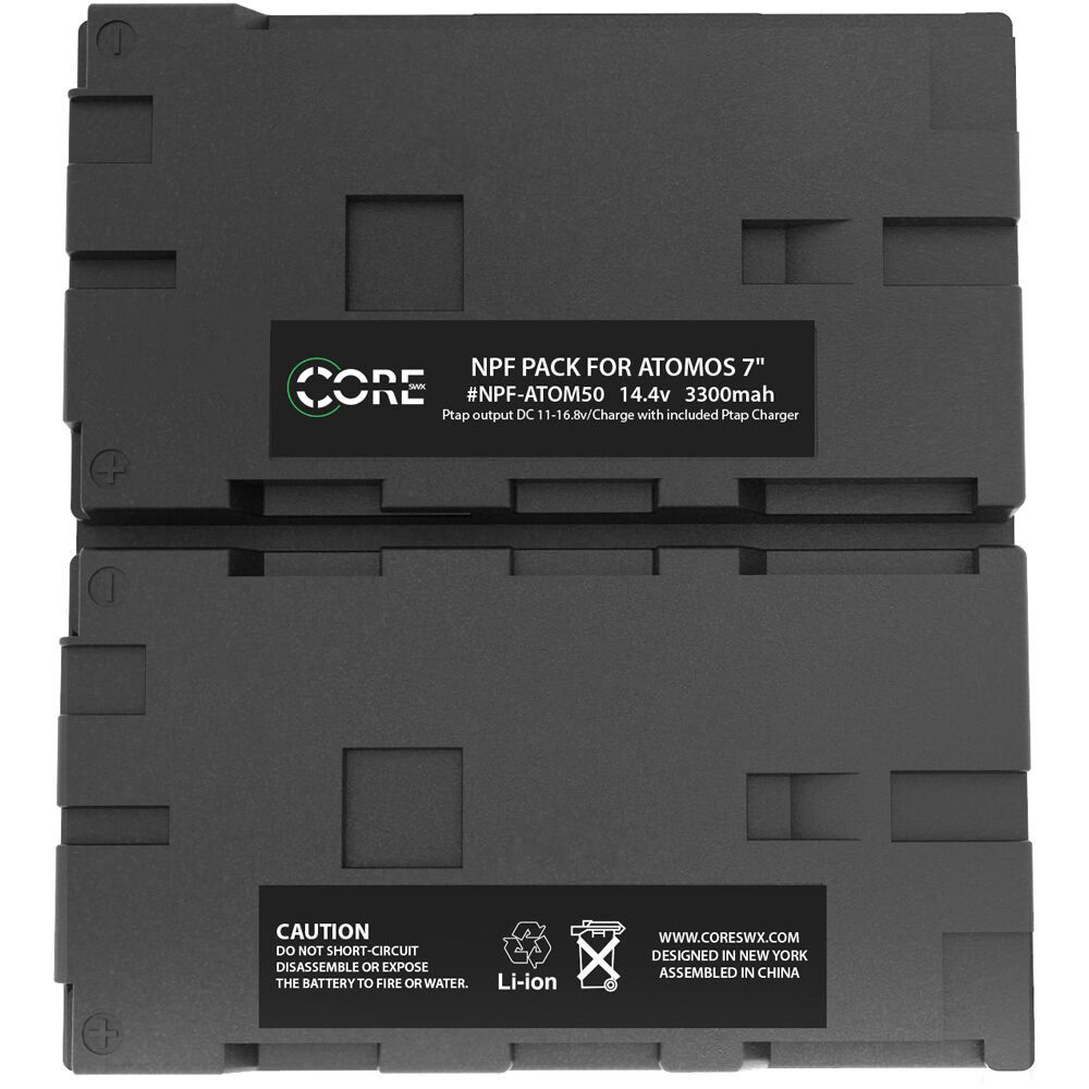 Power your 7" Atomos monitor with a dual NPF sled using this NANO-ATOM50 49Wh NFP Battery Pack. This 14.4V, 3300mAh capacity battery has a draw of 6A, making it capable of sustaining double the draw of a single compatible monitor to avoid stress on the pack. The battery's higher voltage input range means less required amperage for a cooler operating temperature and decreased chance of overheating.