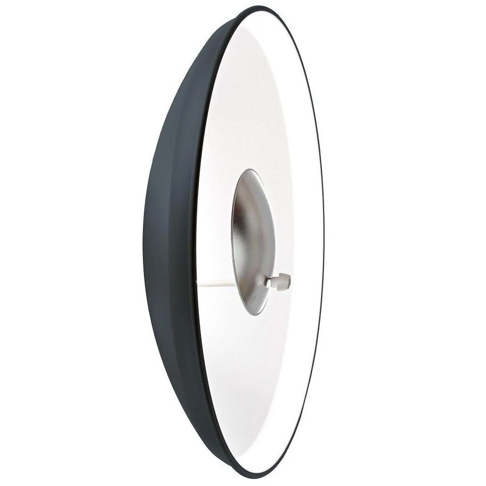 Designed for beauty shots and portrait work, the 44cm, 55deg Softlite White Beauty Dish Reflector allows you to better define facial features. It gives slightly harder lighting than a softbox and offers a soft touch for glamourous images