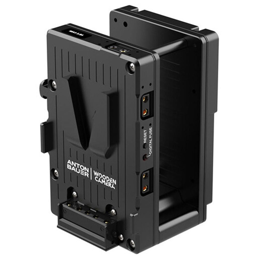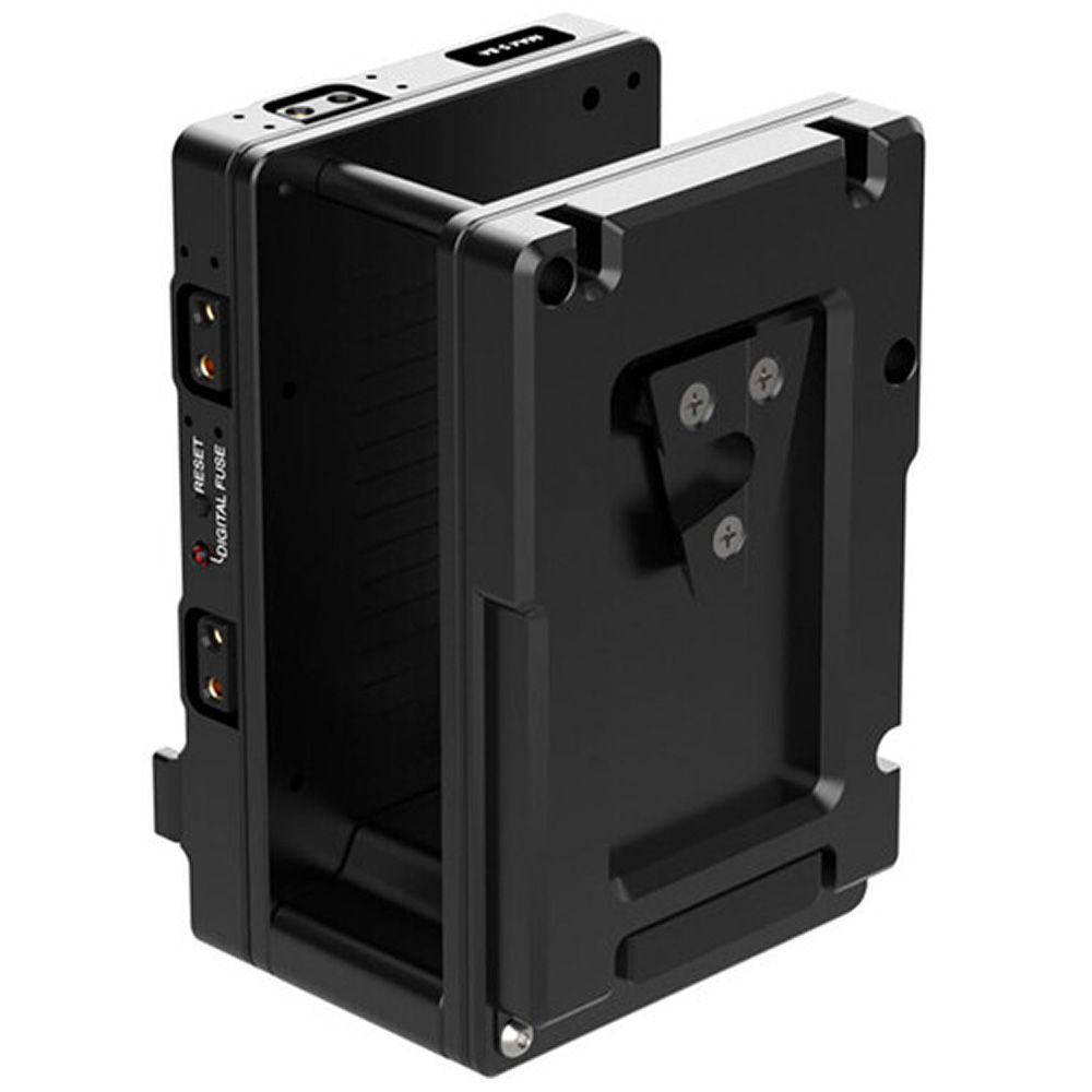 Rear (battery-side) battery plate features 3x D-Taps for accessory power at battery voltage (12-16V) and a digital fuse with reset button. Should the user exceed the set current for accessories, only the accessory outputs are disabled leaving the camera running normally. Once the current load has been reduced by either removing accessories or reconfiguring, the reset button can be pressed to enable accessory power again.