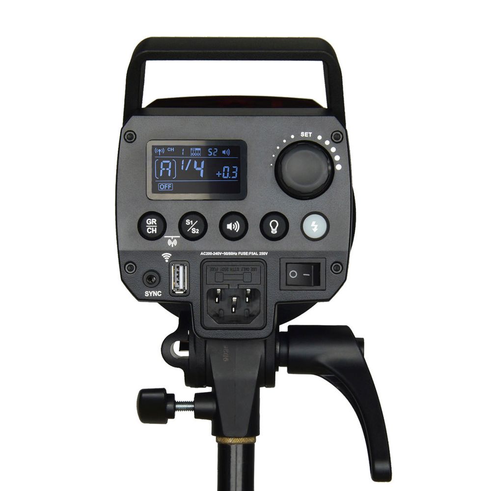 Power can be adjusted from 1/64 to 1/1 in 61 steps. The 30W LED modeling light has 3 modes: Off, Proportional, and Percentage (5 to 100%)
