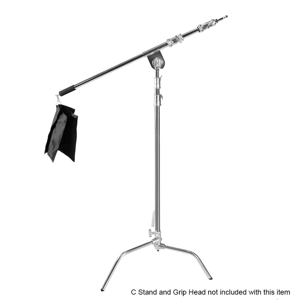 Note: Please fill and use the included sandbag to balance your stand or boom arm if you are using larger accessories on your light like softboxes/umbrellas to reduce the risk of the stand falling.