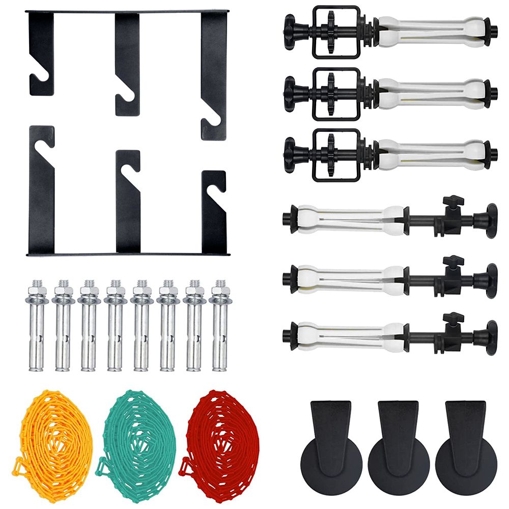 The Xlite Expan + Chain & Triple Hook Set of 3 is a system for hanging and exchanging of up to three back drops. The holder can be fixed to your wall or ceiling so you can easily mount and change between up to 3 paper rolls or other backdrops when using a core to support them.