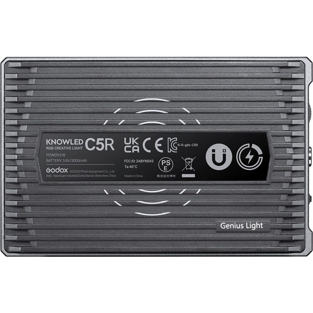 The C5R Knowled RGB Creative LED Light from Godox can add an ultra-compact fill light to your camera setup for improved image quality. Adjust the color temperature from 2500 to 8600K and brightness from 0 to 100% using the onboard controls or Bluetooth app. A built-in LCD panel allows you to see which mode you're in for intuitive control. 39 additional effects modes give you things like fireworks and police car for creative lighting choices.