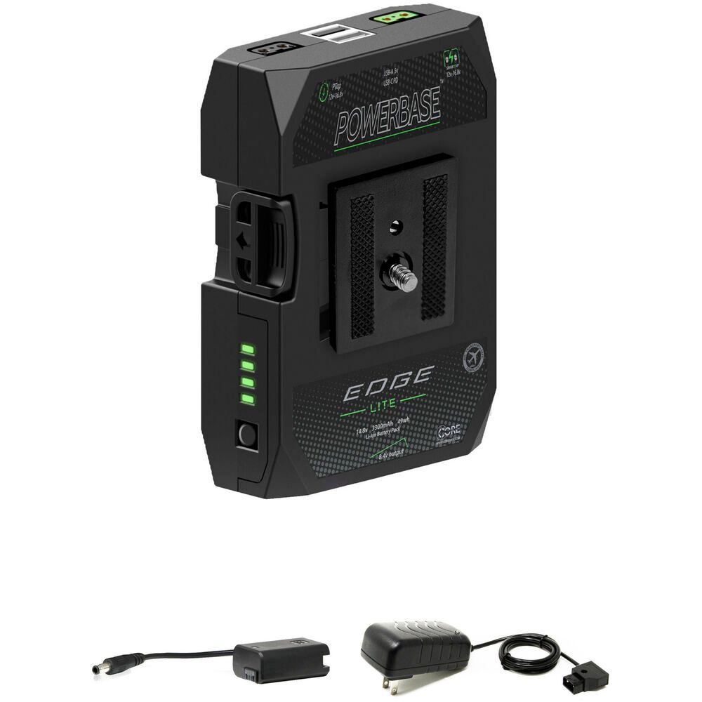 Two unregulated D-Tap ports on the device can power your on-camera monitor or wireless transmitter, while two USB Type-A outputs can charge your mobile device. Another 8V output is compatible with legacy battery paddle cables to attach to your DSLR camera or camcorder. Monitoring your battery's status is easy with the built-in 4-stage LED indicator gauge. The Powerbase EDGE LITE can be recharged with a separately available D-Tap charger.