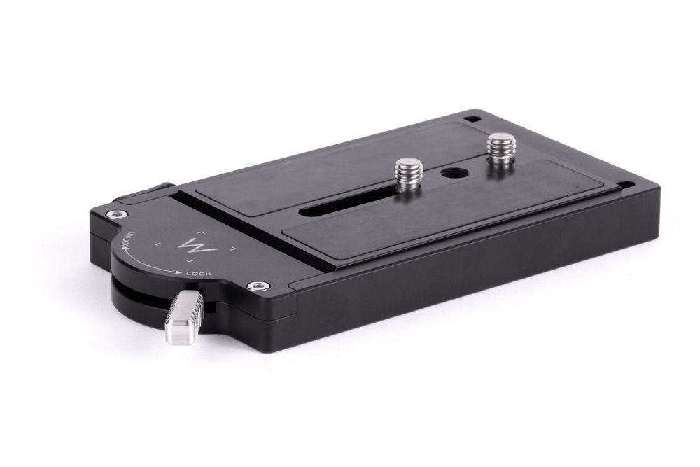 Touch and Go System is an industry standard, quick release system compatible with O'Connor 120mm, Sachtler, and Ronford Baker. Our version is up to 1/3 lighter than other systems due to the recess designs on the receiver and plate. Once the plate is attached to the camera by included 3/8-16 screws, simply drop it into the base and the plate will snap into locked mode. Push the lever further to clamp the Quick Release Plate in place. To remove, pull the lever and push down on side release button at the same time.