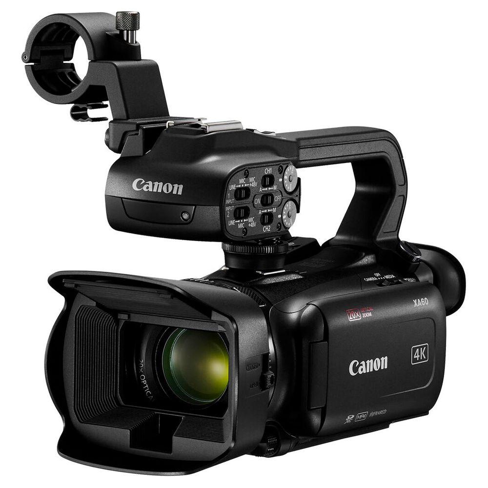 The Canon XA60 Professional UHD 4K Camcorder is a compact, lightweight camera that features many similarities to its XA45 predecessor, including UHD 4K capture, a 1/2.3" CMOS sensor, two XLR audio inputs, and one mini-HDMI output, making it suitable for the ENG category for documentary or journalism-style productions. This streamlined model features a larger 3.5mm LCD capacitive touchscreen display, a higher resolution tiltable 0.36" OLED EVF, XF-AVC and MP4 recording formats, OSD metadata recording, and fast USB Type-C video-only output with UVC support for live streaming to a computer.