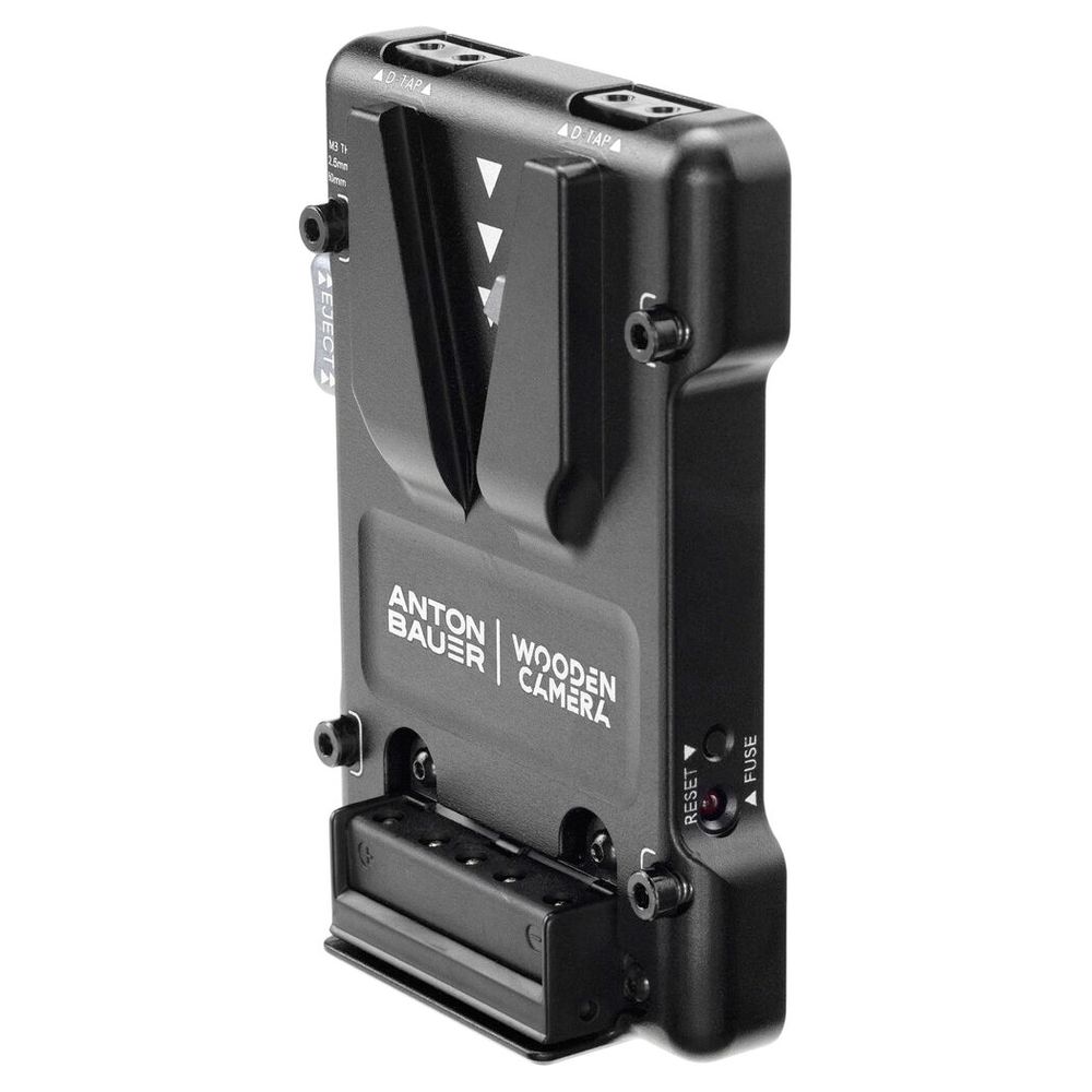 This compact Universal Micro Battery Plate from Wooden Camera supports both micro and full-size V-mount batteries. The durable aluminum alloy plate features two D-Tap output ports and a resettable digital fuse. Mount this plate on your rig using its captive M3 socket-head screws or a separately available cheese-style Accessory Plate.