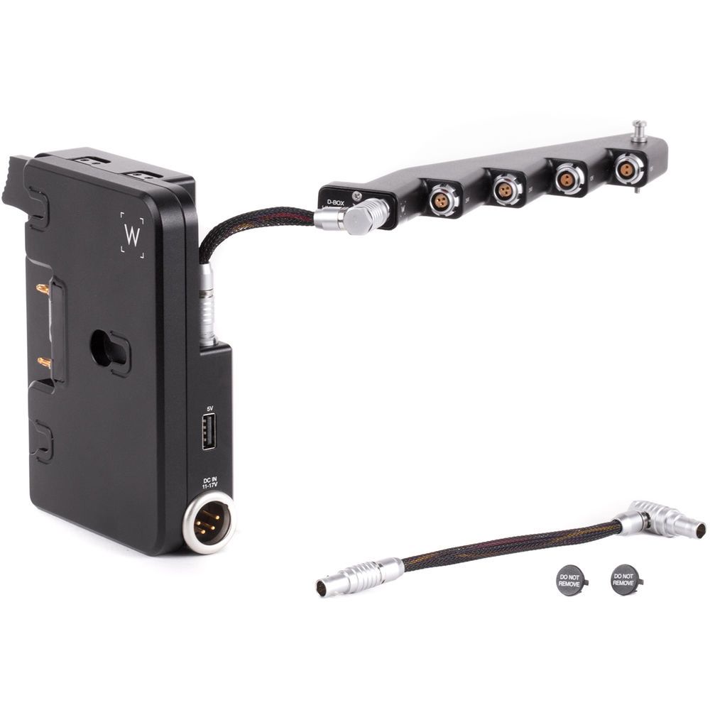 D-Box™ (Sony Venice, Venice 2 , Gold Mount) is a custom version of our popular D-Box™ that adds power distribution, standardized remote start/stop, and hot swap abilities for the Sony Venice, Venice 2 camera. The D-Box™ main unit attaches to the back of the AXS-R7 or to the V-Mount plate on the camera rear and the Power Strip portion attaches to the top right side of the camera via a 3pin Fischer and the tape hook threaded hole.