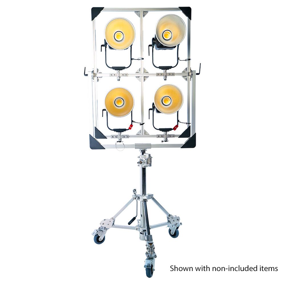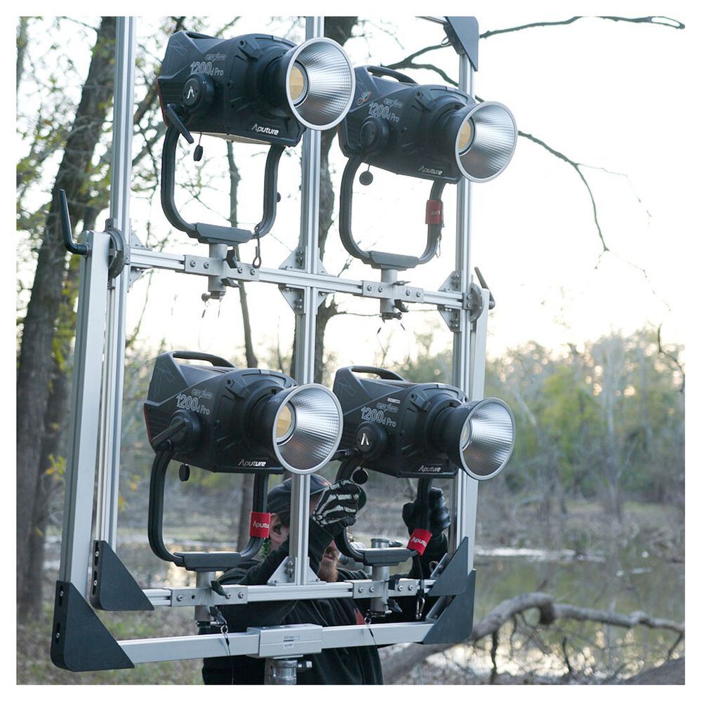This 163.2 x 125.5cm LS 1200 4-Light Bracket from Aputure allows you to mount up to four LS 1200d Pro LED lights together in a heavy-duty aluminum frame. Designed for filmmakers and lighting technicians who want a single frame for an ultrahigh-powered lighting setup, this bracket combined with four separately available LS 1200d Pro fixtures unleashes up to 4800W of directional daylight-balanced light.