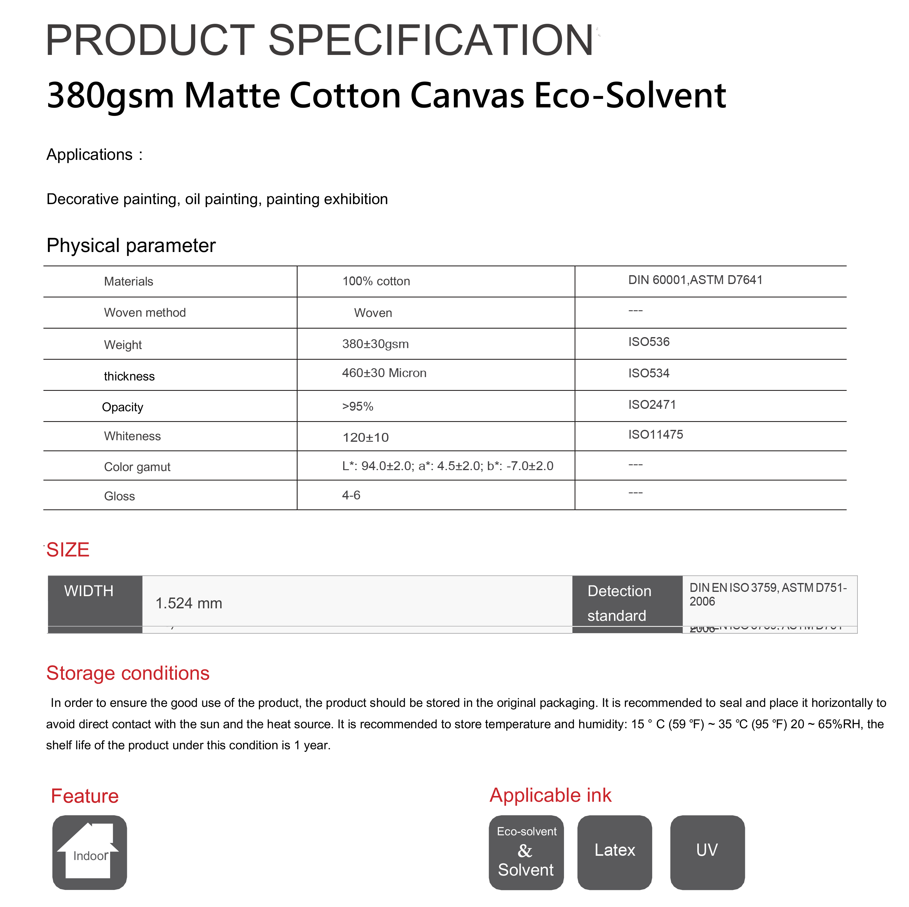 Gamutcanvas Latex/Solvent 100% Cotton Matte 380g 1524mm X 30m