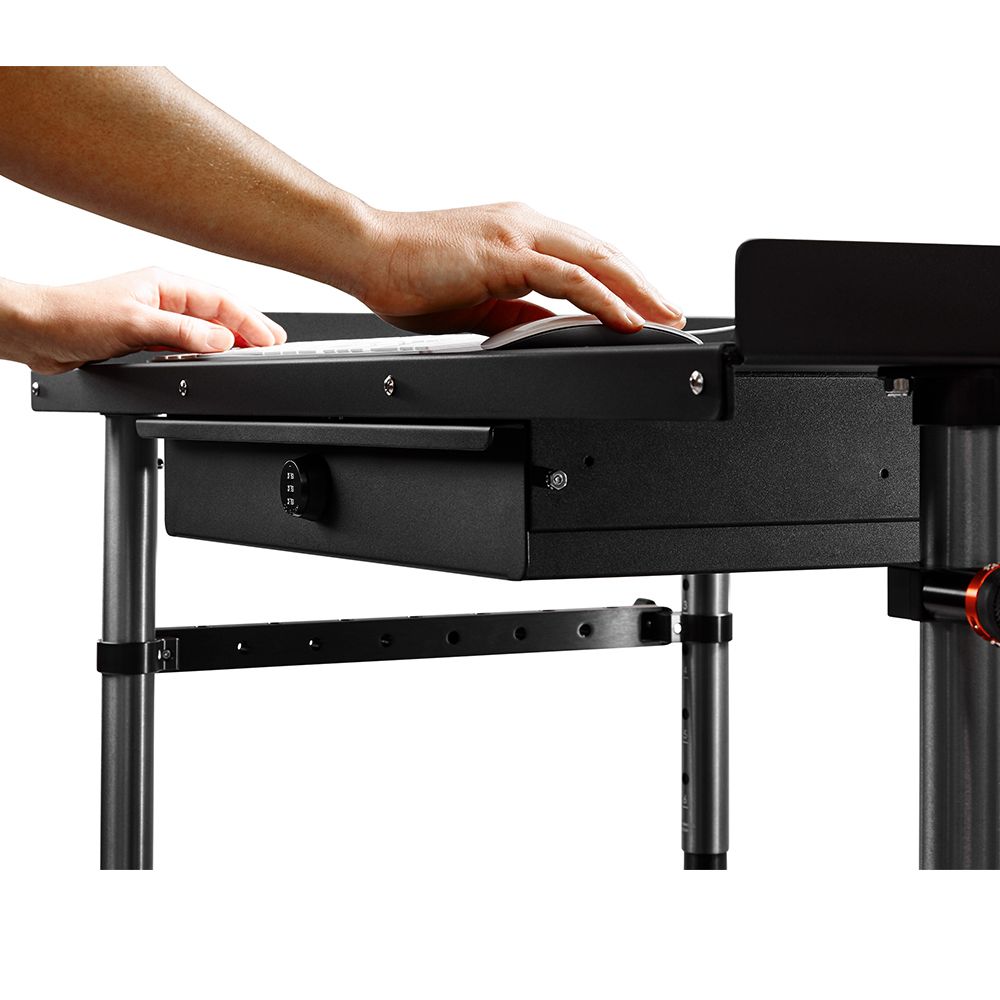 - Low-profile combo-locking top drawer & combo-locking bottom drawer. Drawers have soft slider.