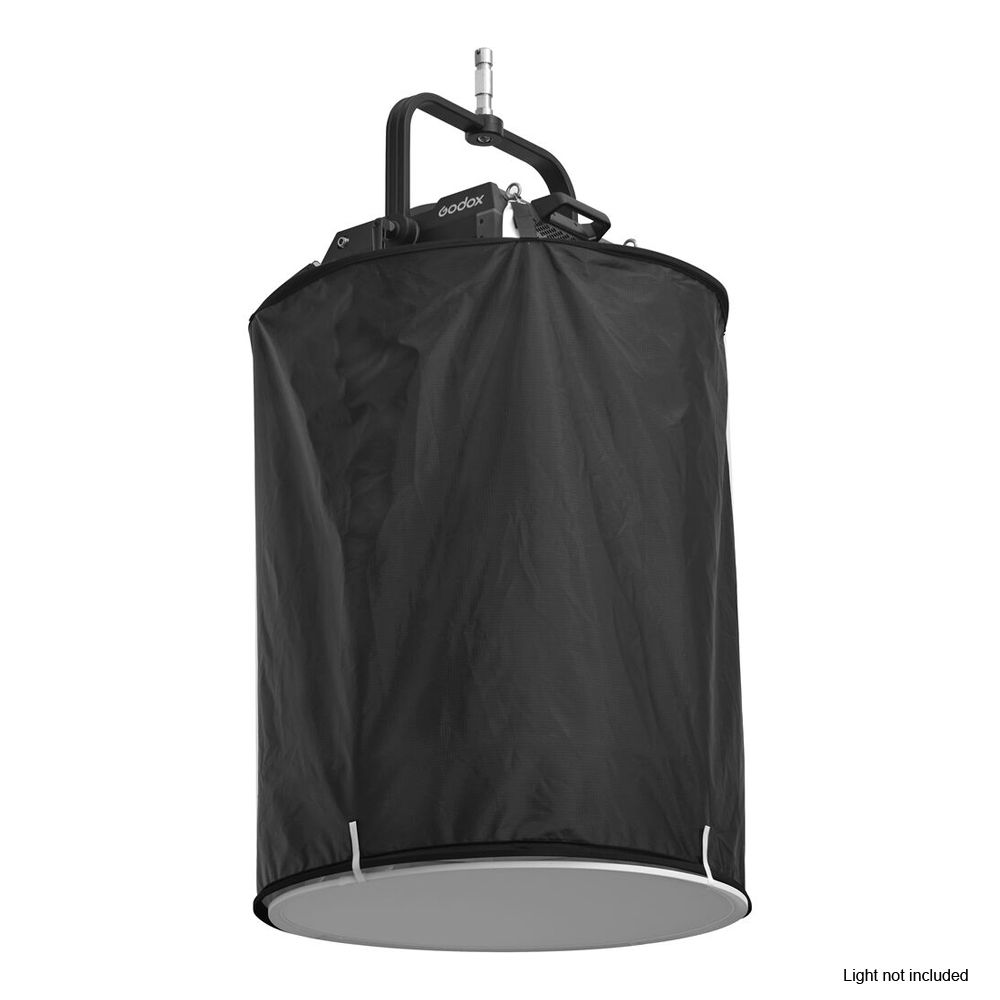 This Skirt for P600BI Cylinder Softbox from Godox is an accessory that controls the light beam spread of the overhead modifier, funneling it through the bottom opening of the softbox.