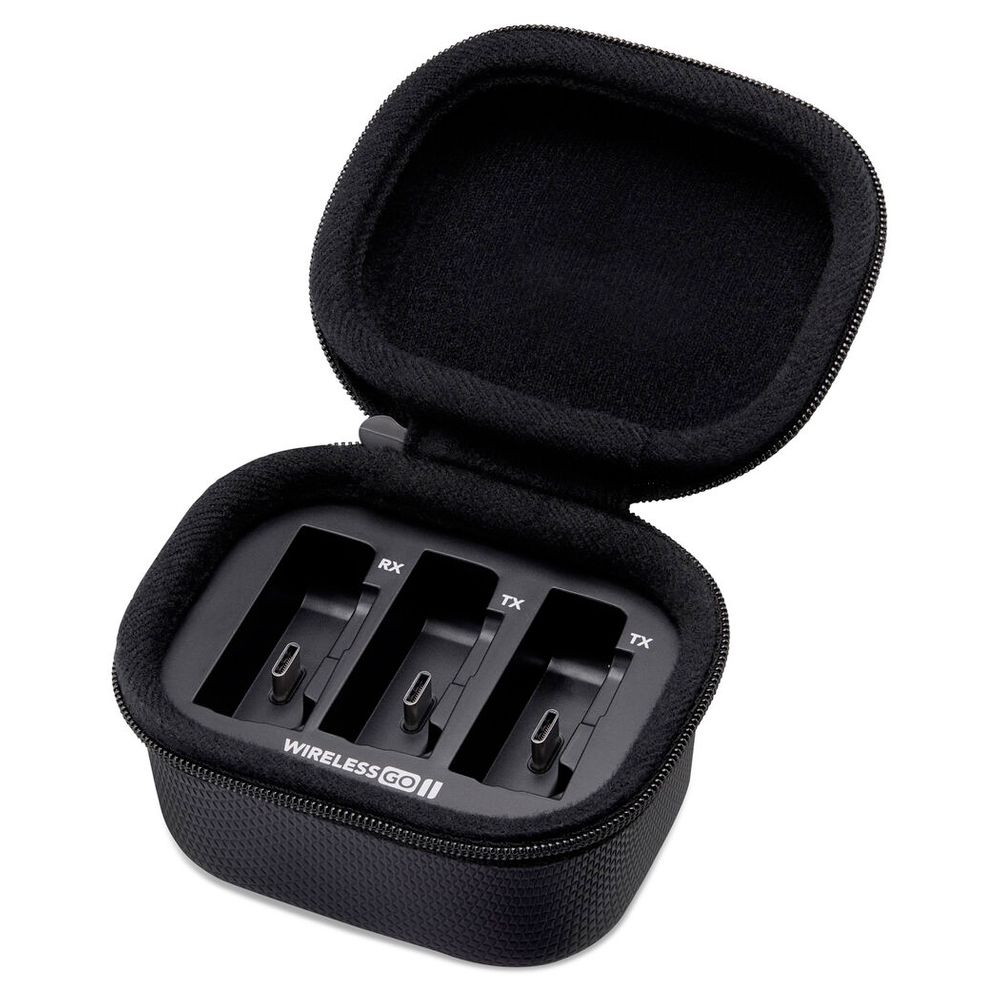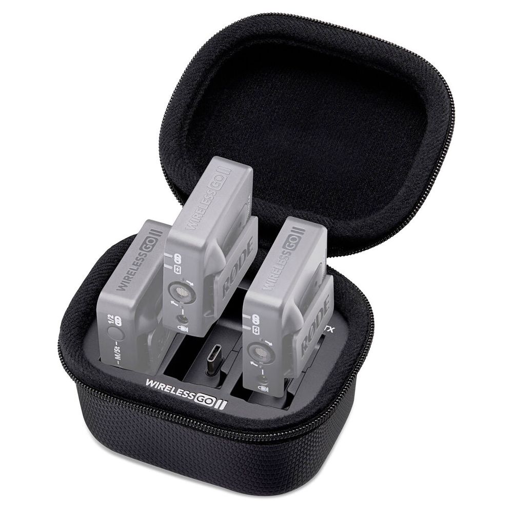 Keep your Wireless GO II microphone system safe and fully powered with the Wireless GO II Charging Case from RODE, a handy accessory that features a rechargeable internal battery that can facilitate up to three full recharges for up to 30 hours of continuous use in the field. This case accommodates both transmitters as well as the receiver. And with a rugged enclosure and zipper system, it simultaneously provides power and protection when your Wireless GO II system is in transit or storage.