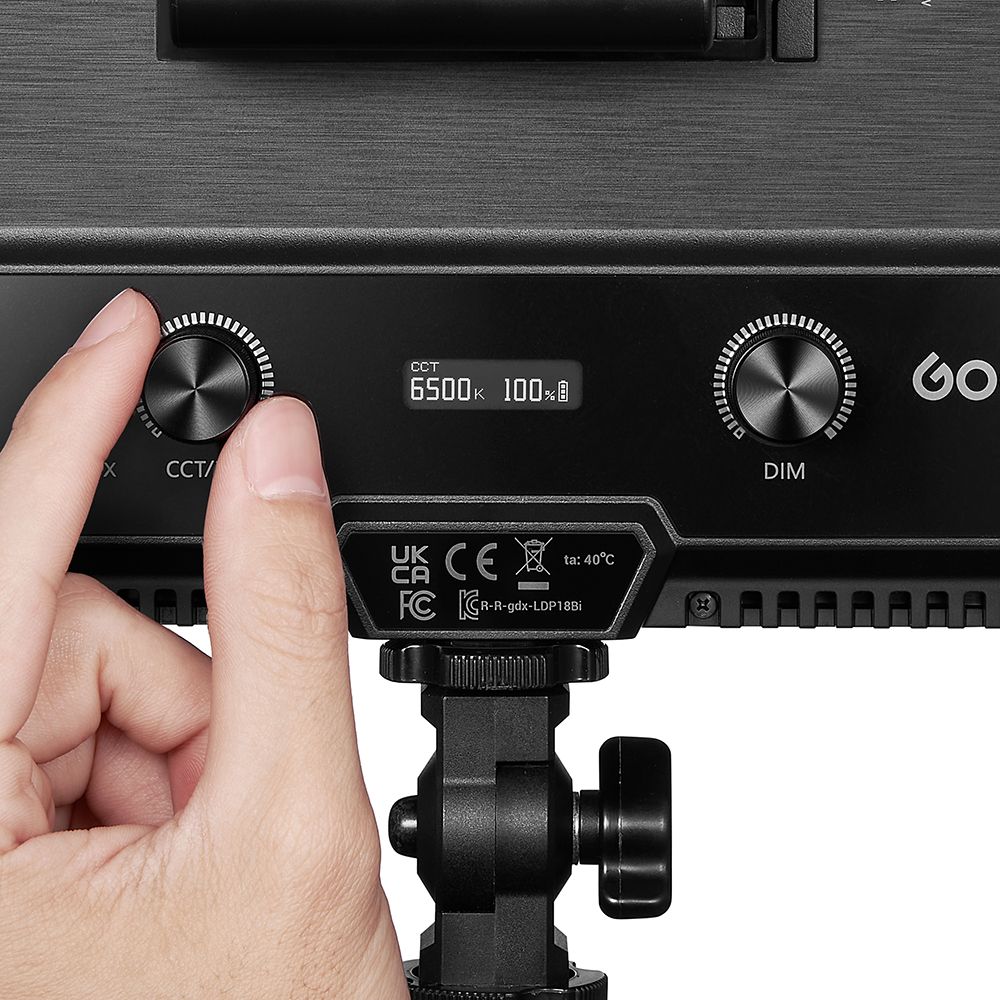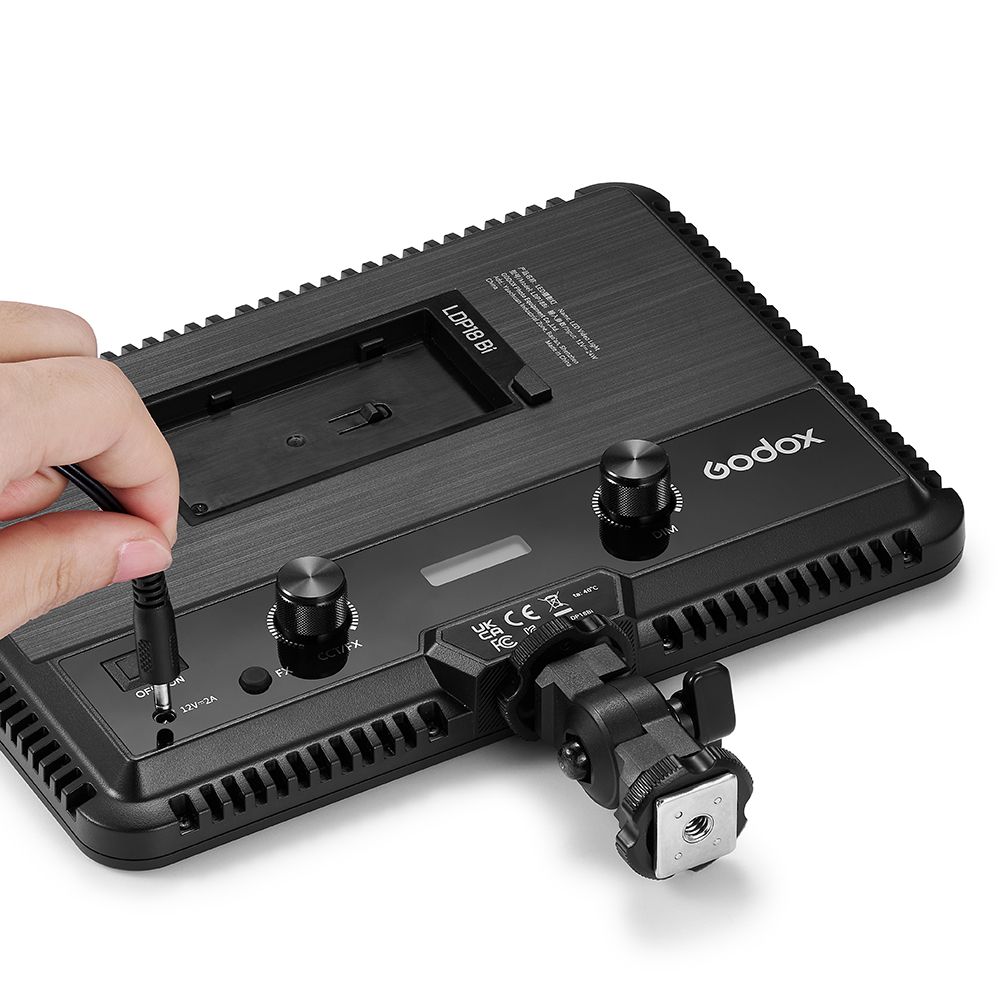 The panel is dimmable from 0 to 100% and it also features eight types of lighting effects with 22 levels and options, including flash, TV, broken bulb, welding, and more. The LDP18D features an L-series battery plate and can also be powered using the included DC adapter. The lightweight, compact panel measures only 150 x 210mm so it can fit into any streaming setup or mount on top of your camera using the included hotshoe adapter mount.