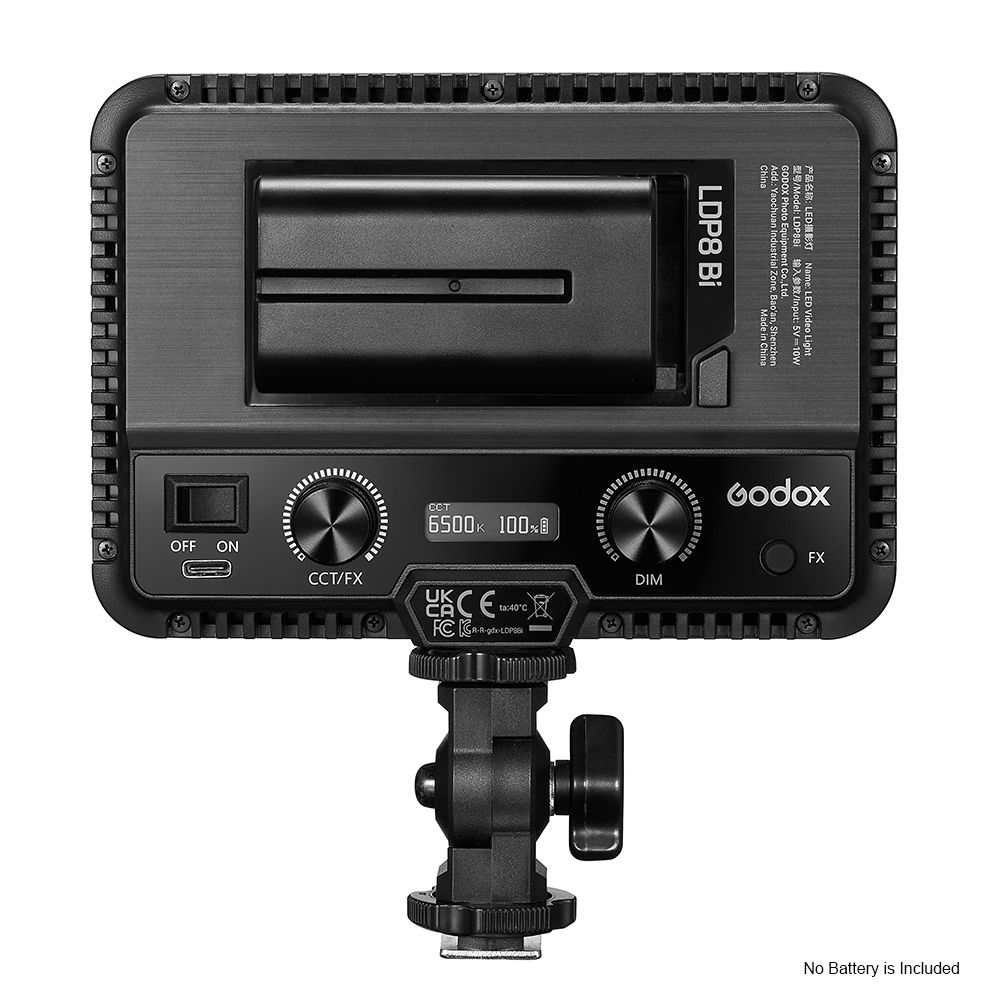 The panel is dimmable from 0 to 100% and it also features 11 types of lighting effects with 31 levels and options, including flash, TV, broken bulb, welding, and more. The LDP8BI features an L-series battery plate and can also be powered using a separately available DC source using the USB-C power input. The lightweight, compact panel measures only 104 x 147mm so it can fit into any streaming setup or mount on top of your camera using the included hotshoe adapter mount.