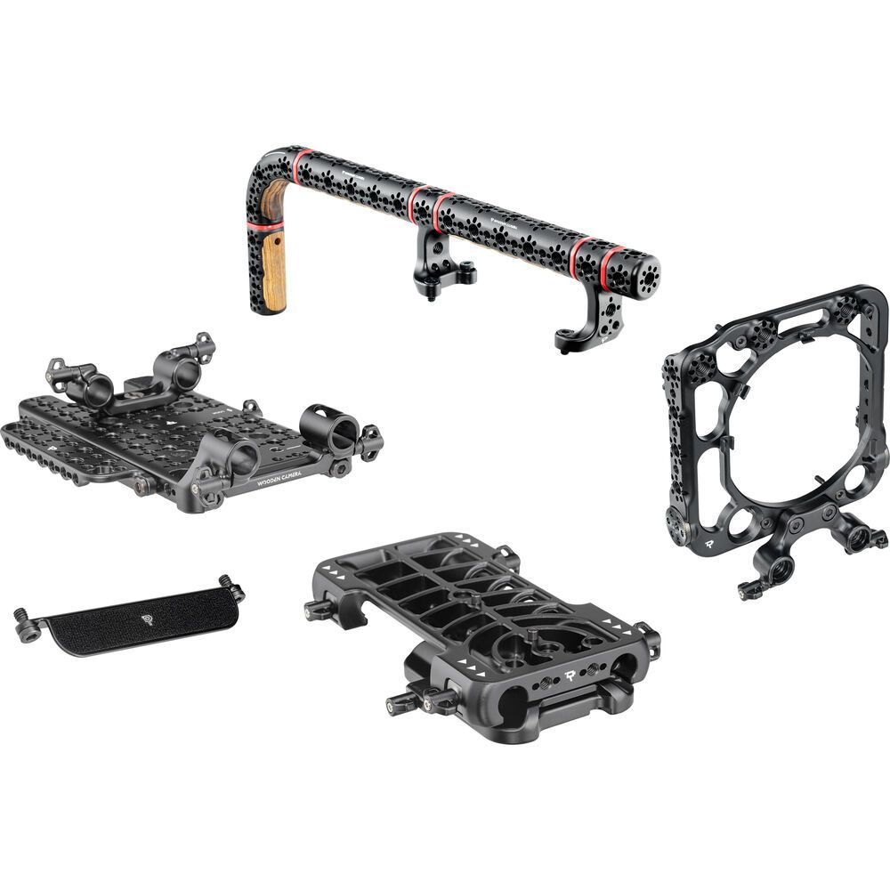 This Faceplate Cage from Wooden Camera attaches to your select Sony VENICE Series camera with its existing mounting points to provide places to attach various accessories. Multiple 1/4"-20 and 3/8"-16 threads with locating pins throughout the cage can attach articulating arms or wireless transmitters to the cage. Two rosette mounts on the sides of the Faceplate can accommodate handles for handheld or shoulder-mounted shooting.