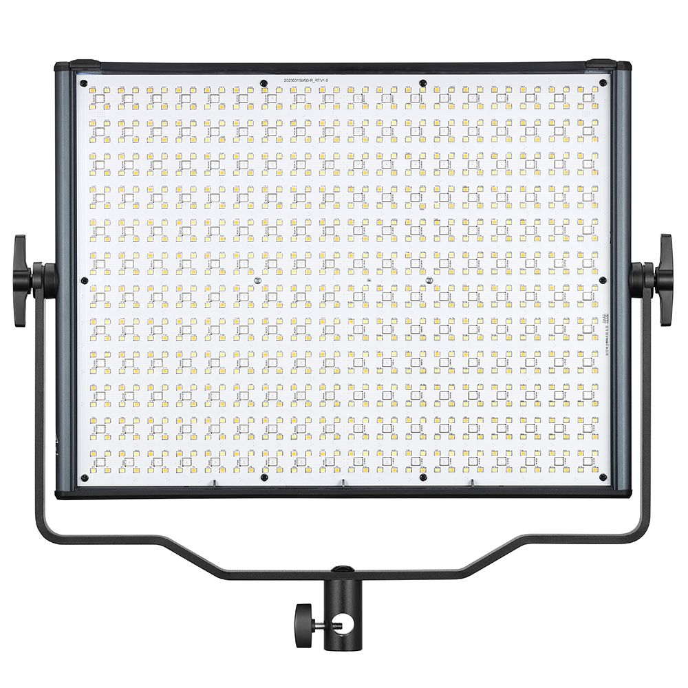 The LDX100R RGB LED Light Panel from Godox is a compact 46 x 40cm fixture with RGBWW capability to enable you to quickly adjust the color temperature from 2500 to 10,000K. The light can be dimmed from 0 to 100% throughout its CCT range, giving you high CRI/TLCI ratings of 96 as indicators of advanced accuracy in color rendering. Furthermore, this panel provides a soft light well suited for video use with 14 special effects to lend realism to your shoot. Adjustments can be made either onboard, remotely through an optional wireless remote control, or via an app directly from your smartphone.