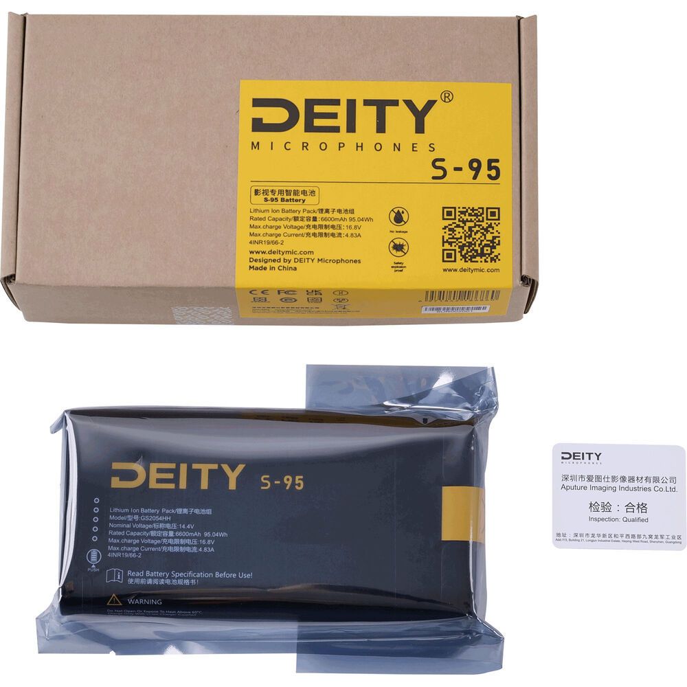 - The S-95 can be charged in just over 2 hours when paired with the Deity DQC1 portable smart battery charger (available separately).
