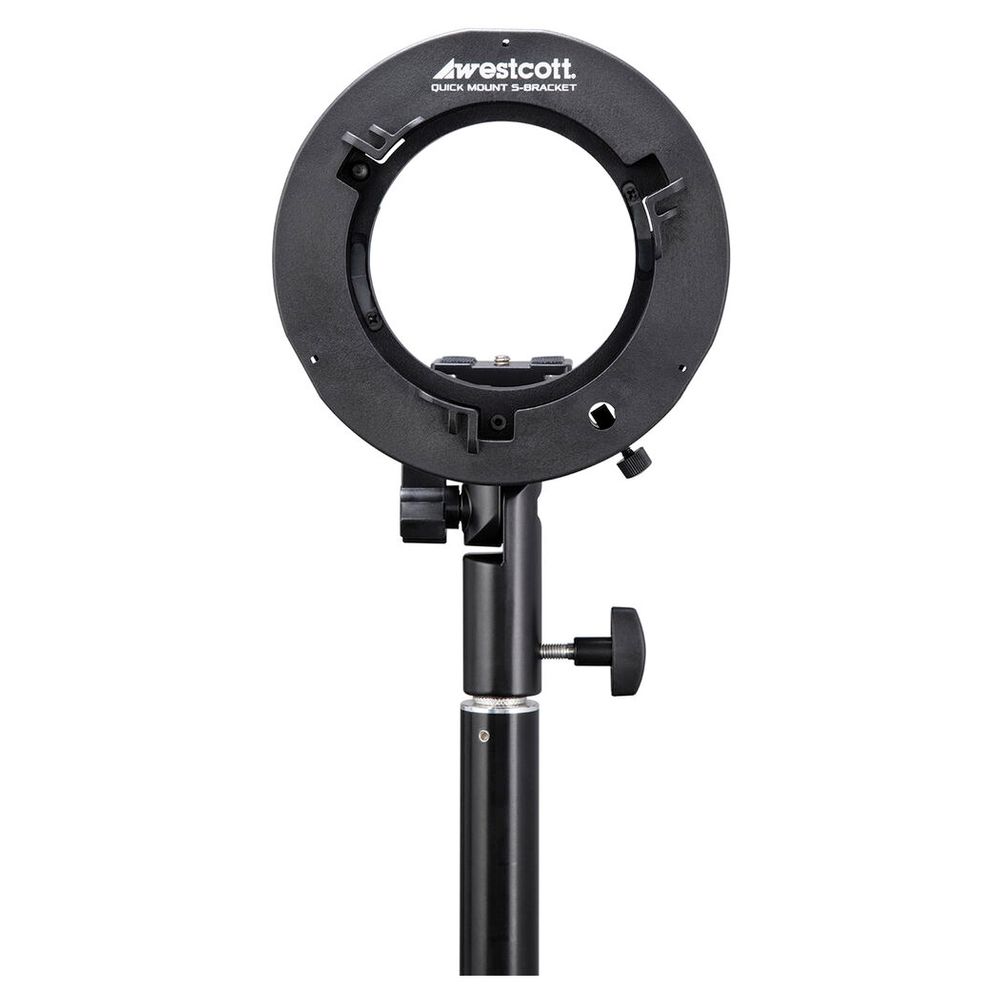 Use this Westcott Quick Mount S-Bracket to mount umbrellas and modifiers onto compact lights without causing unwanted stress that can damage your delicate gear. For additional usability, the bracket is outfitted with three cold shoe mounts around its perimeter for speedlights with umbrellas. Made from a combination of aluminum and high-impact plastic, it is compatible with lights up to 8.9cm diameter and modifiers weighing up to 2kg.
