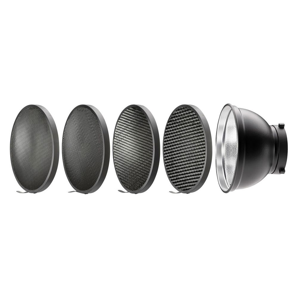 It's all about control and the 55° Wide Umbrella Reflector with Honeycomb Grids from Westcott gives you just that. Start with the 55° reflector that's small enough to fit an umbrella shaft. The reflector accepts the included 10, 20, 30, and 40° honeycomb grids. The lower the number, the tighter the beam angle - great for use as a hair or accent light. A bonus is the elimination of spill light that enables selective lighting of your subject.